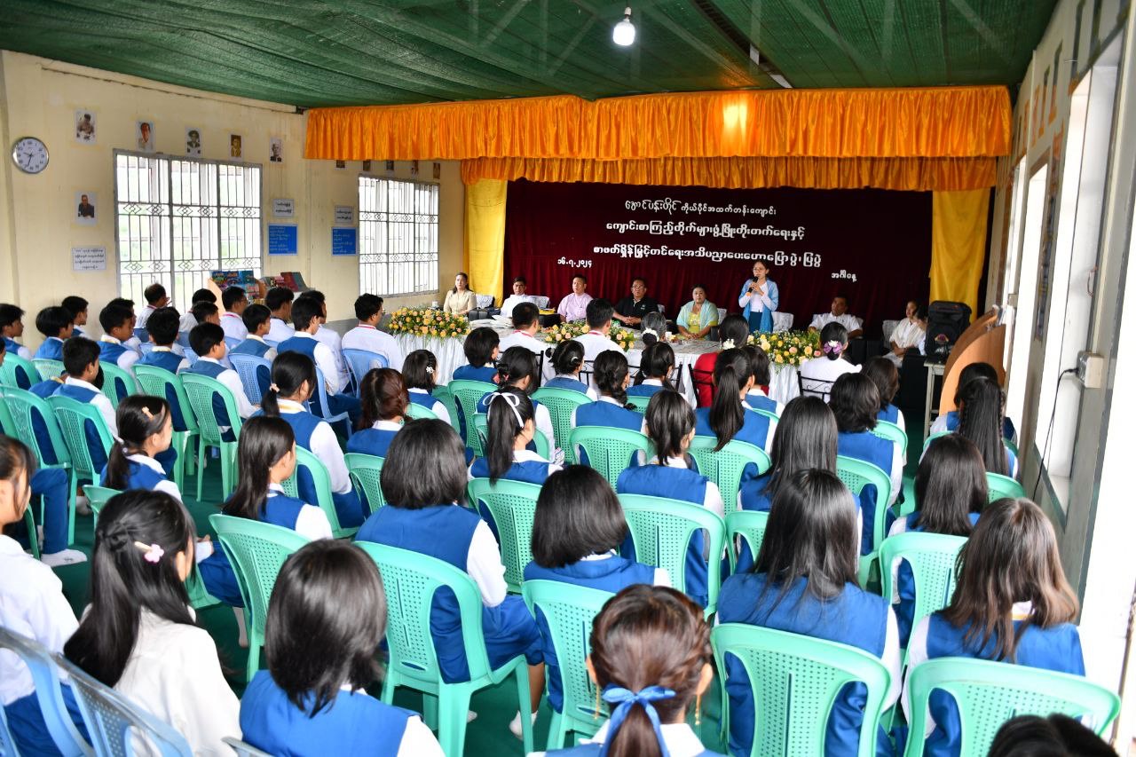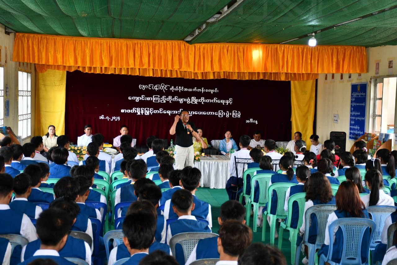 အဆိုပါ စာပေဟောပြောပွဲတွင် ရှေးဦးစွာ အောင်ပန်းတိုင် ကိုယ်ပိုင်အထက်တန်းကျောင်းမှ တာဝန်ခံဆရာမ ဒေါ်လွင်မျိုးထွန်းက အဖွင့်အမှာစကား ပြောကြားပြီး ပြန်ကြားရေးနှင့်ပြည်သူ့ ဆက်ဆံရေးဦးစီးဌာနမှ ဦးစီးအရာရှိ ဒေါ်ယမင်းလှိုင်က စာကြည့်တိုက်များ ဖွံ့ဖြိုးတိုးတက်ရေး၊ ကျောင်းသားလူငယ်များ စာဖတ်ရှိန်မြှင့်တင်ရေးဆိုင်ရာ ကိစ္စရပ်များနှင့် ကျောင်းစာကြည့်တိုက် များအရောက် ယခုလို ကွင်းဆင်းကာ စာပေဟောပြောပွဲ ကျင်းရခြင်း၏ ရည်ရွယ်ချက်များအား ရှင်းလင်းပြောကြားသည်။