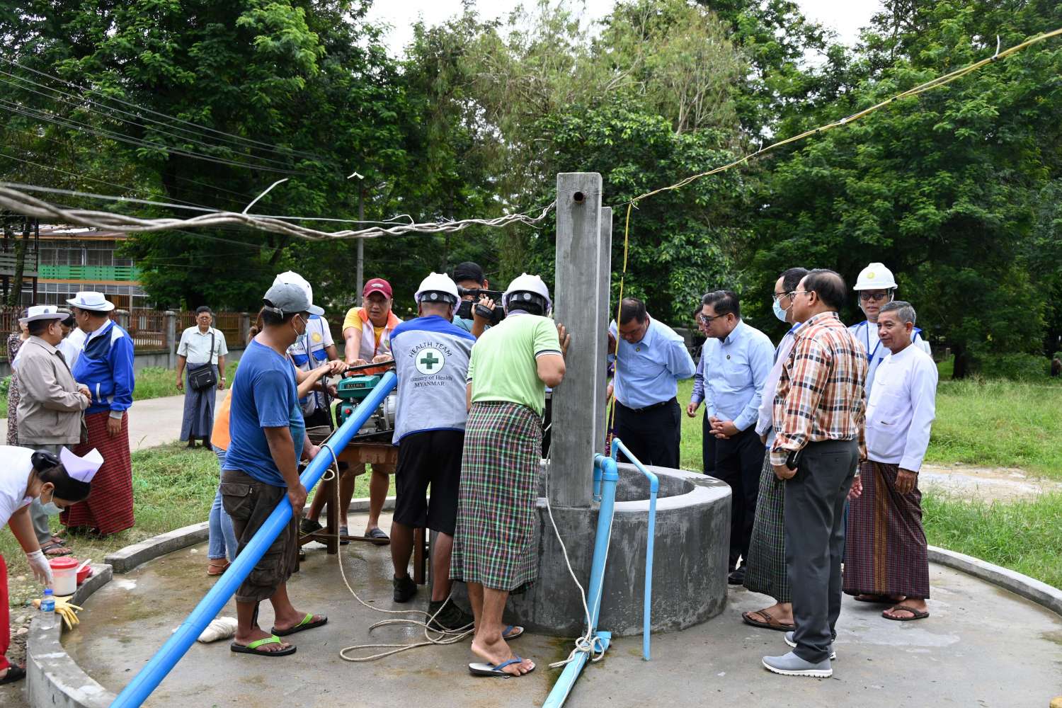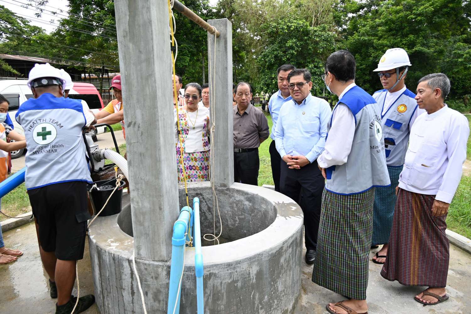ယင်းနောက် ပြည်နယ်ဝန်ကြီးချုပ်နှင့် အဖွဲ့ဝင်များသည် ကျန်းမာရေးဝန်ထမ်းများက မြစ်ရေပြန်လည်ကျဆင်းပြီး နောက်ဆက်တွဲကူးစက်ရောဂါများဖြစ်ပွားမှုမှ ကြိုတင်ကာကွယ်ရေးအတွက် တက္ကသိုလ်ဝင်းအတွင်းရှိ ရေတွင်း/ရေကန်များအား နုန်းမြေများစုပ်ထုတ်ခြင်း၊ ဆေးခတ်ခြင်းလုပ်ငန်း ဆောင်ရွက်နေမှုကို ကြည့်ရှုအားပေးခဲ့ကြပြီး ဝန်ထမ်းများအတွက် ထောက်ပံ့ငွေများကို ချီးမြှင့်ပေးအပ်ခဲ့ကြသည်။