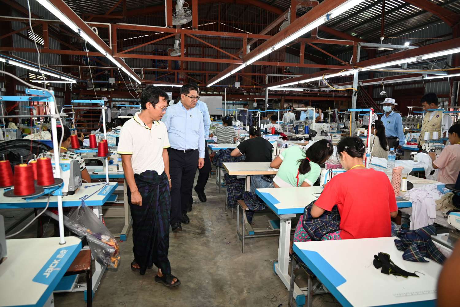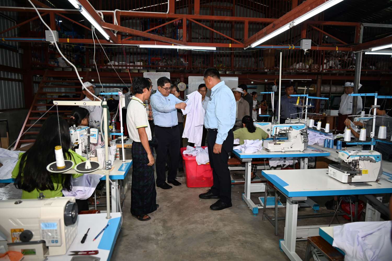 ယင်းနောက် မြစ်ကြီးနားမြို့ နောင်နန်းကျေးရွာအုပ်စုအတွင်းရှိ ပြည်နယ်တွင်း ပထမဆုံးဖြစ်သော အထည်ချုပ်စက်ရုံတစ်ခုဖြစ်သည့် J2A အထည်ချုပ်စက်ရုံသို့သွားရောက်ခဲ့ကြပြီး စက်ရုံအတွင်း ဒေသခံလူငယ် ၁၀၀ ကျော်တို့အား အလုပ်အကိုင်အခွင့်အလမ်းပေးထားမှု၊ အထည်ချုပ်လုပ်ငန်းများ ဆောင်ရွက်နေမှုများကို လှည့်လည်ကြည့်ရှုစစ်ဆေးခဲ့ကြပြီး စက်မှုလုပ်ငန်းမှတ်ပုံတင်ရရှိရေး၊ နိုင်ငံ့စီးပွားမြှင့်တင်ရေးရန်ပုံငွေမှ မတည်ပေးနိုင်ရေးတို့ကို ဌာနဆိုင်ရာတာဝန်ရှိသူများနှင့် ညှိနှိုင်းပေါင်းစပ်၍ လိုအပ်သည်များကို ဖြည့်ဆည်းဆောင်ရွက်ပေးခဲ့သည်။