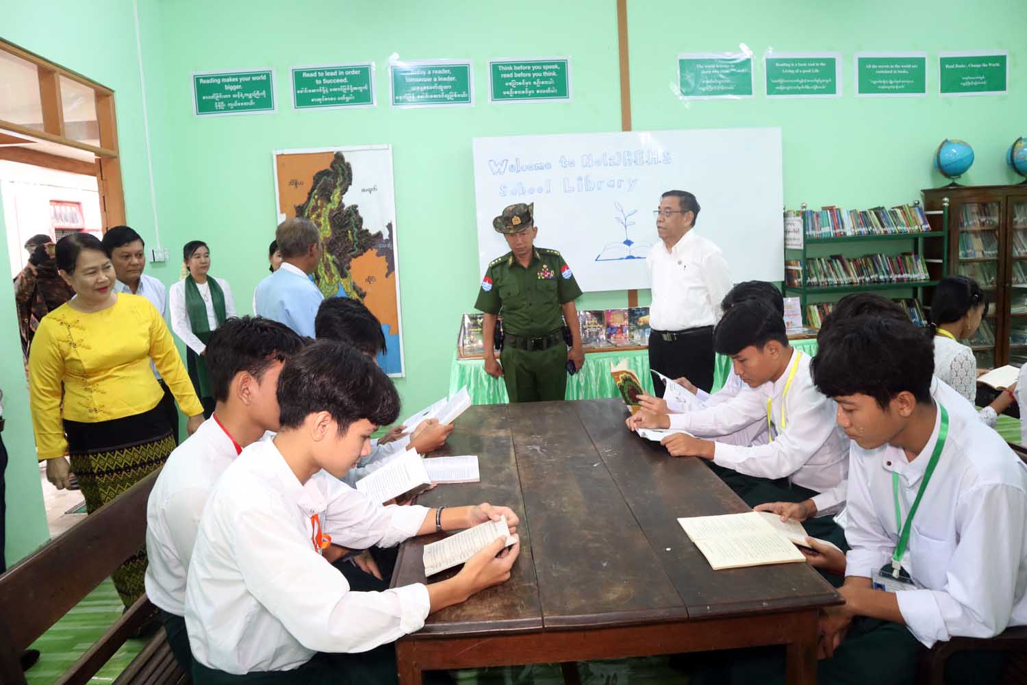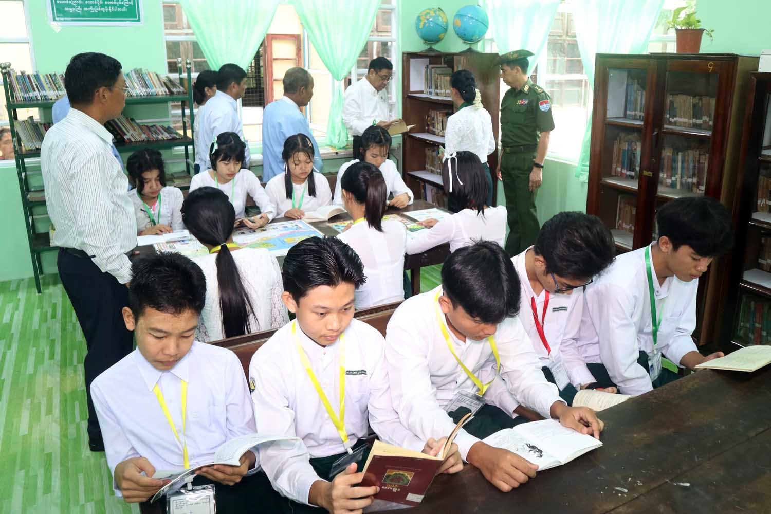 ဆက်လက်၍ တိုင်းဒေသကြီးဝန်ကြီးချုပ်နှင့်တာဝန်ရှိသူများက ကျောင်းသား/သူများ၊ ဆရာ/မများ၊ သင်ကြားသင်ယူမှုတွင် အထောက်အကူဖြစ်စေရန်၊ ကျောင်းသား/သူများသည် စာကြည့်တိုက်မှတဆင့် အမျိုးသားယဉ်ကျေးမှုမြတ်နိုးစေရန်၊ အမျိုးဇာတိမာန် ထက်သန်စေရန် စသည့် ရည်ရွယ်ချက်များဖြင့် ဖွင့်လှစ်ထားရှိသည့် ကျောင်းစာကြည့်တိုက်အားကြည့်ရှုအားပေးသည်။