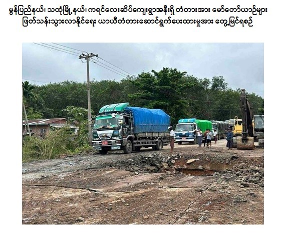 လက်ရှိအချိန်တွင် လူနှင့် မော်တော်ယာဉ်များ ဖြတ်သန်းသွားလာမှု အဆင်ပြေစေရန်အတွက် သက်ဆိုင်ရာလမ်း/ တံတားဦးစီးဌာနမှ တာဝန်ရှိသူများက ယာယီတံတားအား အမြန်ဆုံးဆောင်ရွက်ပေးခဲ့ရာ မော်တော်ယာဉ်များ ပြန်လည်သွားလာနိုင်ပြီဖြစ်ကြောင်းနှင့် ပျက်စီးသွားသည့်တံတားအား အမြန်ဆုံးပြန်လည်ပြုပြင်နိုင်ရေး ဆက်လက်ဆောင်ရွက်လျက်ရှိကြောင်း သတင်းရရှိသည်။