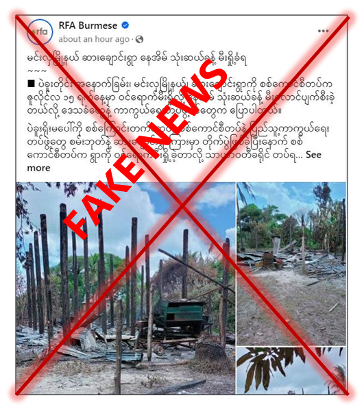 ပဲခူးတိုင်းဒေသကြီး၊ မင်းလှမြို့နယ်၊ ဆားချောင်းကျေးရွာနှင့် စမ်းဘုတ်ကျေးရွာကြားတွင် တိုက်ပွဲဖြစ်ပွားခဲ့ပြီးနောက် လုံခြုံရေးတပ်ဖွဲ့ဝင်များက ဆားချောင်းကျေးရွာကို ဝင်ရောက်မီးရှို့ခဲ့ကြောင်း၊ အဆိုပါမီးရှို့မှုကြောင့် နေအိမ် ၃၀ ခန့် မီးလောင်ပျက်စီးခဲ့သည်ဟု သတင်းတု၊ သတင်းအမှားများကို တရားမဝင်ပြည်ဖျက်မီဒီယာများက လူမှုကွန်ရက်စာမျက်နှာများတွင် လုပ်ကြံရေးသားဖြန့်ဝေနေသည်ကို တွေ့ရှိရသည်။
