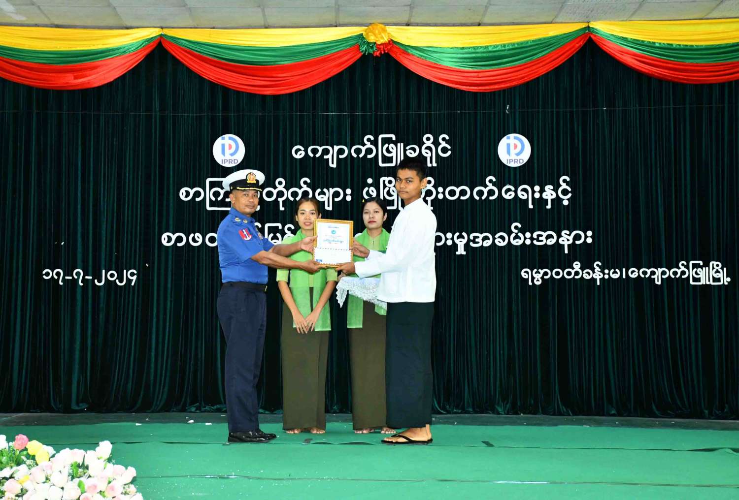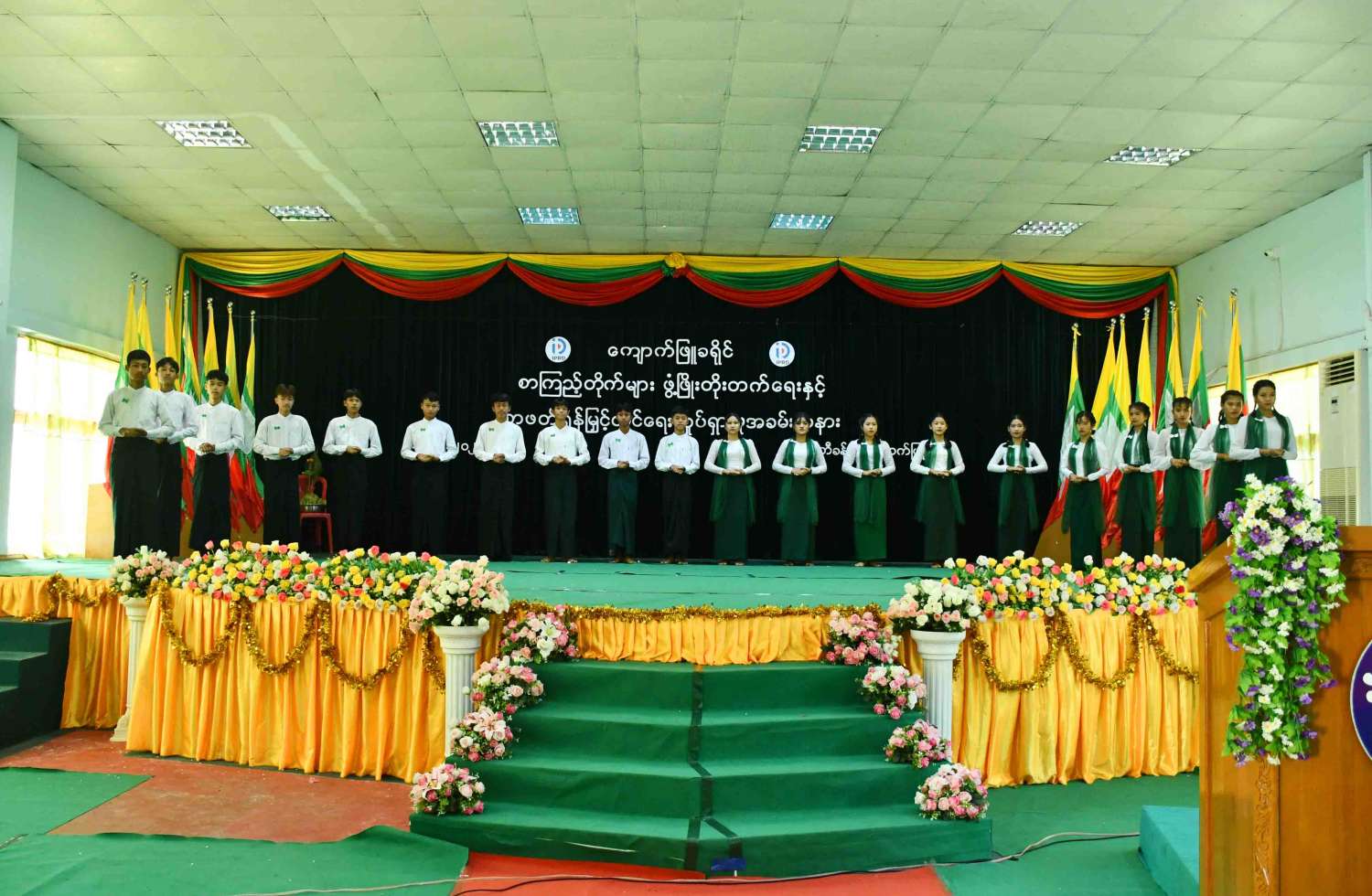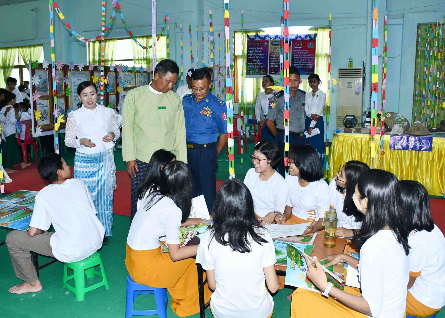 ဆက်လက်၍ ခရိုင်စီမံအုပ်ချုပ်ရေးအဖွဲ့ဥက္ကဋ္ဌက စာကြည့်တိုက်များဖွံ့ဖြိုးတိုးတက်ရေးအတွက် စာအုပ်၊ စာစောင်များအား ပေးအပ်လှူဒါန်းရာ ပြန်ကြားရေးနှင့်ပြည်သူ့ဆက်ဆံရေးဦးစီးဌာနမှ ခရိုင်ဦးစီးမှူးက လက်ခံရယူပြီး အ.ထ.က(ခွဲ)အ.လ.က(၂)ကျောင်းမှ ကျောင်း သား၊ ကျောင်းသူများက “ဘက်စုံပညာရည်တို့လှမ်းချီ” သီချင်းအားသီဆိုဖျော်ဖြေကာ ပထပိုင်းအခမ်းအနားအစီအစဉ်အား ခေတ္တရပ်နားခဲ့သည်။