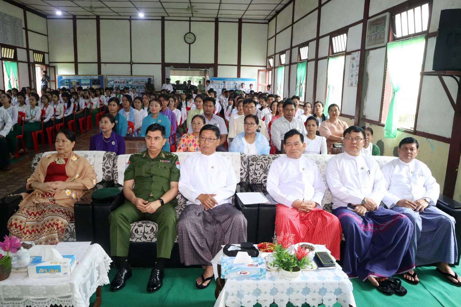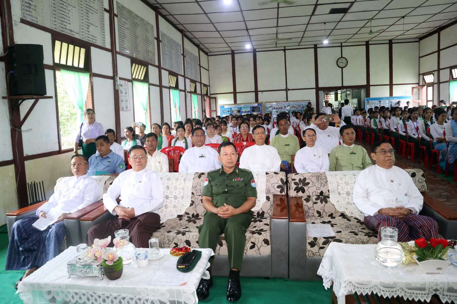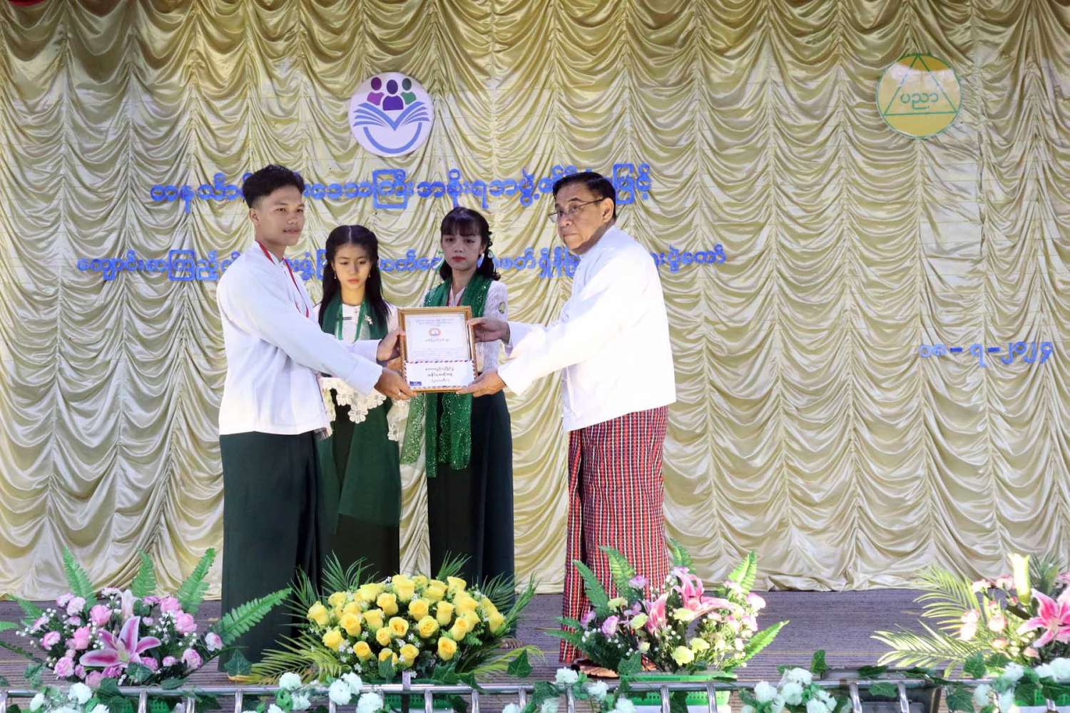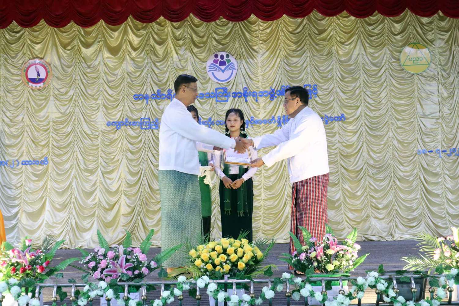 ၎င်းနောက် တိုင်းဒေသကြီး လမ်းပန်းဆက်သွယ်ရေးဝန်ကြီး ဦးအောင်ဇော်လှိုင်၊ တိုင်းဒေသကြီး တိုင်းရင်းသားရေးရာဝန်ကြီး ဦးစောမာတင်လူသာ၊ တိုင်းဒေသကြီးဥပဒေချုပ် ဦးအုန်းသန်းနှင့် တာဝန်ရှိသူများတို့က ပြိုင်ပွဲဝင်ကျောင်းသား/သူများအား ဂုဏ်ပြုလက်ဆောင်များပေးအပ်ပြီး တိုင်းဒေသကြီး အမျိုးသမီးရေးရာအဖွဲ့၊ မိခင်နှင့်ကလေးစောင့်ရှောက်မှုကြီးကြပ်ရေးအဖွဲ့နှင့် အလှူရှင်များ(ကိုယ်စား) ကျောင်းအကျိုးတော်ဆောင်တို့က ကျောင်းစာကြည့်တိုက်အတွက် စာအုပ်စာစောင်များ ပေးအပ်လှူဒါန်းရာ ကျောင်းအုပ်ဆရာကြီးက လက်ခံ ရယူသည်။