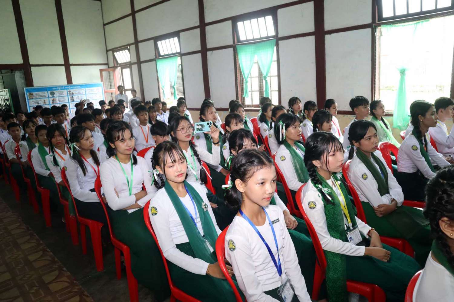 တနင်္သာရီတိုင်းဒေသကြီးအစိုးရအဖွဲ့၏ စီမံမှုဖြင့် ပြန်ကြားရေးနှင့်ပြည်သူ့ဆက်ဆံရေးဦးစီးဌာနနှင့် အခြေခံပညာဦးစီးဌာနတို့ ပူးပေါင်း၍ ကျောင်းစာကြည့်တိုက်များ ဖွံ့ဖြိုးတိုးတက်ရေးနှင့် စာဖတ်ရှိန်မြှင့်တင်ရေးပွဲတော် ဆုချီးမြှင့်ပွဲအခမ်းအနားကို ယနေ့နံနက် ၉ နာရီခွဲက ထားဝယ်မြို့၊ အမှတ်(၂) အခြေခံပညာအထက်တန်းကျောင်းခန်းမ၌ကျင်းပရာ ကျောင်းသား/သူများက “မြန်မာပြည်မှာ စာပဒေသာဝေဆာစေ” သီချင်းဖြင့် သီဆိုဖျော်ဖြေသည်။