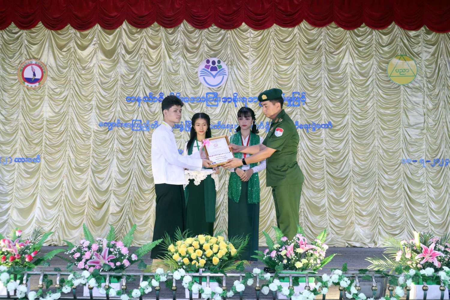 ဆက်လက်၍ ကမ်းရိုးတန်းဒေသတိုင်းစစ်ဌာနချုပ်၊ ဒုတိယတိုင်းမှူးဗိုလ်မှူးကြီး အောင်မျိုးထွန်းက ကျပန်းစကားပြောပြိုင်ပွဲ တွင်ဆုရရှိသော ကျောင်းသား/သူများအားလည်းကောင်း၊ တိုင်းဒေသကြီး လုံခြုံရေးနှင့် နယ်စပ်ရေးရာဝန်ကြီး ဗိုလ်မှူးကြီး မင်းမင်းလတ်စာစီစာကုံး (အလယ်တန်း) အဆင့်တွင် ဆုရရှိသော ကျောင်းသား/သူများအား လည်းကောင်း၊ တိုင်းဒေသကြီး စီးပွားရေးရာဝန်ကြီး ဦးမောင်ကြီးက ကျပန်းစကားပြောပြိုင်ပွဲတွင် ဆုရရှိသော ကျောင်းသား/သူများအားလည်းကောင်း၊ တိုင်းဒေသကြီး သယံဇာတရေးရာဝန်ကြီး ဦးခင်မောင်မြင့်က ကဗျာရွတ်ဆိုပြိုင်ပွဲတွင် ဆုရရှိသော ကျောင်းသား/သူများအား လည်းကောင်း၊ တိုင်းဒေသကြီးလူမှုရေးရာဝန်ကြီးဦးသက်နိုင်က ပုံပြင်ပြောပြိုင်ပွဲတွင် ဆုရရှိသောကျောင်းသား/သူများအား လည်းကောင်း၊ ဆုများအသီးသီး ပေးအပ်ချီးမြှင့်သည်။