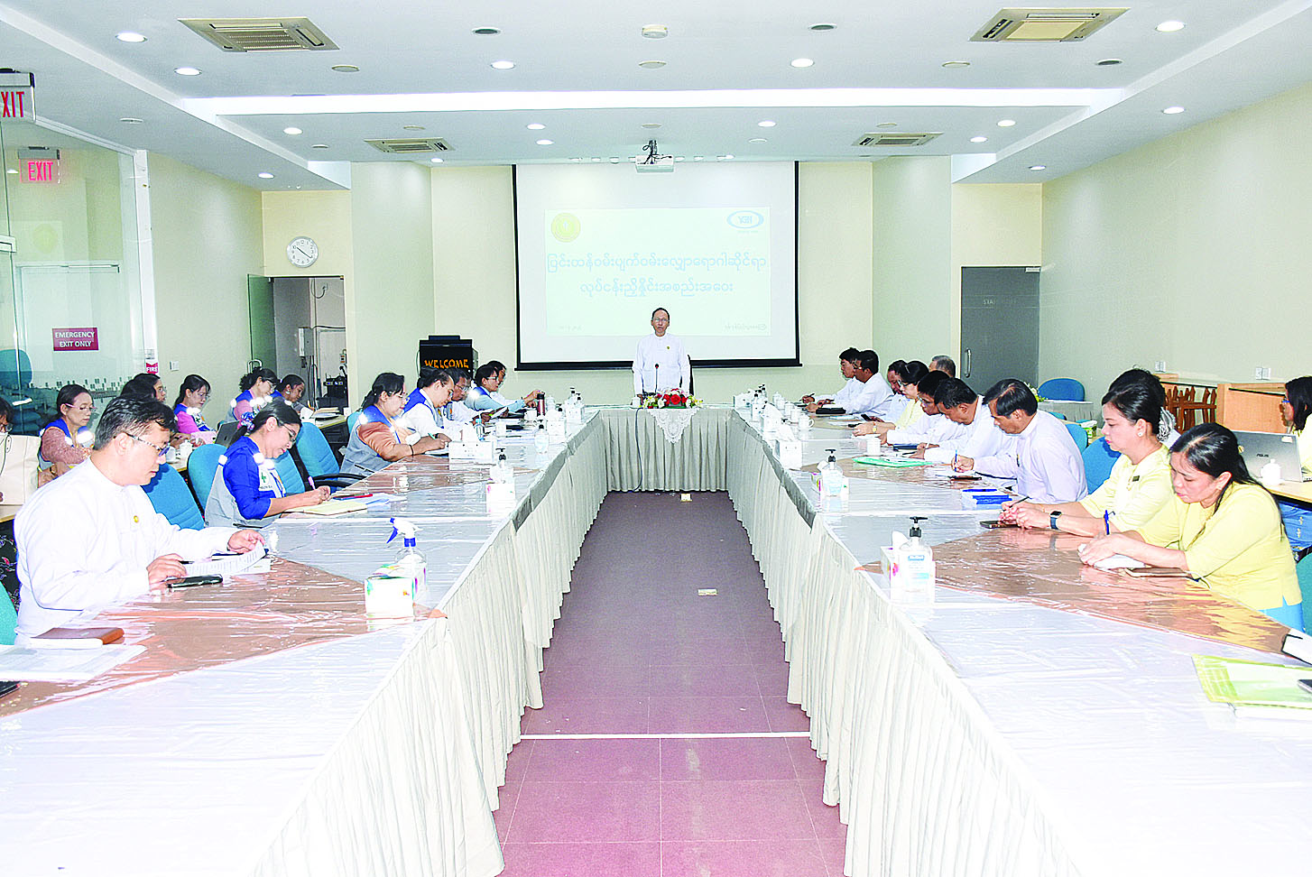 အစည်းအဝေးတွင် ပြည်ထောင်စုဝန်ကြီးက ရန်ကုန်တိုင်းဒေသကြီးအတွင်းရှိ မြို့နယ်အချို့တွင် ပြင်းထန်ဝမ်းပျက်ဝမ်းလျှောရောဂါ ဖြစ်ပွားနေမှုများနှင့်ပတ်သက်၍ ကာကွယ်ထိန်းချုပ် ရေးလုပ်ငန်းများကို ပြည်သူလူထုပူးပေါင်းပါဝင်မှုဖြင့် ဘက်စုံ၊ ကဏ္ဍစုံမှ ဝိုင်းဝန်းကြိုးပမ်းဆောင်ရွက် နေသည့်အတွက် လတ်တလောတွင် စတင်ထိန်းချုပ်နိုင်သော အခြေအရောက်ရှိပြီဖြစ်ကြောင်း၊ “လူ့အသက်ထက်အရေးကြီးသော အရာမရှိ” ဟူသော နိုင်ငံတော်၏မူဝါဒနှင့်အညီ ရောဂါထိန်းချုပ်ရေးလုပ်ငန်းများကို အရှိန်အဟုန်ဖြင့် ဆောင်ရွက်လျက်ရှိကြောင်း၊ ကိုဗစ်-၁၉ ရောဂါကဲ့သို့သော ကူးစက်မြန်ရောဂါထိန်းချုပ်ရေး၊ မိုခါမုန်တိုင်း နောက်ဆက်တွဲကျန်းမာရေးစောင့်ရှောက်မှုလုပ်ငန်းများနှင့် ဝမ်းပျက်ဝမ်းလျှောရောဂါကပ်အသွင် ဖြစ်ပွားမှုမရှိစေရေးတို့ကို နိုင်ငံတော်အကြီးအကဲများ၏လမ်းညွှန်မှု သက်ဆိုင်ရာဌာနဆိုင်ရာများနှင့် ပြည်သူလူထု၏ စနစ်တကျပူးပေါင်းပါဝင်ဆောင်ရွက်မှုများဖြင့် အောင်မြင်စွာဆောင်ရွက်နိုင်ခဲ့သည့် အတွေ့အကြုံနှင့်မှတ်တမ်းများရှိပါကြောင်း၊ ပြည်သူလူထုအတွက် ပိုမိုကောင်းမွန်သော ကျန်းမာရေးနှင့်လူနေမှုစနစ်များ ဖန်တီးတည်ဆောက်နိုင်ရန် အားလုံးတက်ညီလက်ညီ ဆက်လက်ပူးပေါင်းဆောင်ရွက်ကြစေလိုကြောင်း ပြောကြားသည်။