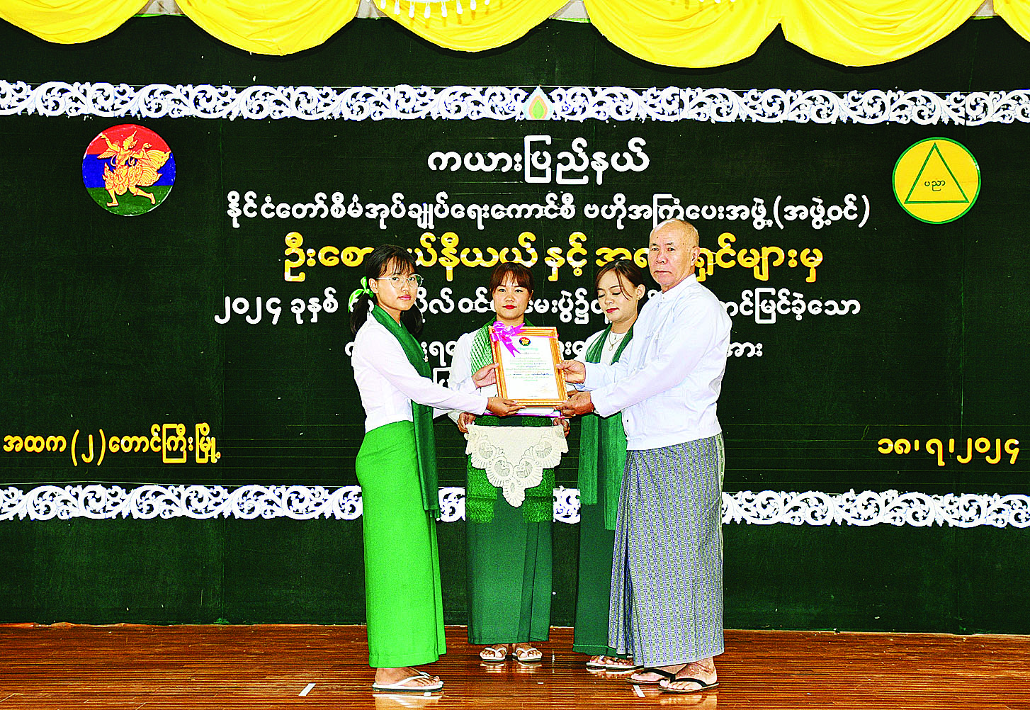 ဒေသအခက်အခဲကြောင့် ရှမ်းပြည်နယ်(တောင်ပိုင်း) တောင်ကြီးမြို့တွင်ရောက်ရှိနေသော ကယားပြည်နယ်မှ ၂၀၂၄ ခုနှစ် တက္ကသိုလ်ဝင် စာမေးပွဲအောင် ဂုဏ်ထူးရကျောင်းသားကျောင်းသူများအား ဂုဏ်ပြုဆုချီးမြှင့်ပွဲအခမ်းအနားကို ယနေ့နံနက် ၉ နာရီက ကျောင်းကြီးစုရပ်ကွက် အမှတ် (၂) အခြေခံပညာအထက်တန်းကျောင်း ပညာအလင်္ကာခန်းမ၌ ကျင်းပသည်။