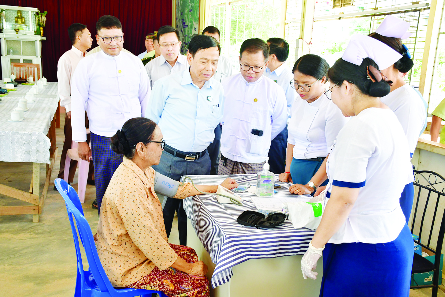 နေပြည်တော်ကောင်စီဥက္ကဋ္ဌ ဦးသန်းထွန်းဦးသည် နေပြည်တော်ကောင်စီဝင်များ၊ နေပြည်တော်စည်ပင်သာယာရေးကော်မတီ ဒုတိယမြို့တော်ဝန်၊ တာဝန်ရှိသူများနှင့်အတူ ယနေ့မွန်းလွဲပိုင်းတွင် နေပြည်တော်ဇမ္ဗူသီရိမြို့နယ် သုခတော်ဝင်အိမ်ရာ တိုက်ခန်းများသာယာရေးအဖွဲ့ရုံး၌ ဇမ္ဗူသီရိမြို့နယ် ပြည်သူ့ကျန်းမာရေးဦးစီးဌာနက သုခတော်ဝင်အိမ်ရာရှိ ပြည်သူများအား အခမဲ့ကျန်းမားရေးစောင့်ရှောက်မှုပေးခြင်း လုပ်ငန်းဆောင်ရွက်နေမှုကို သွားရောက်ကြည့်ရှုအားပေးပြီး လိုအပ်သည်များ ပေါင်းစပ်ညှိနှိုင်းဆောင်ရွက်ပေးသည်။