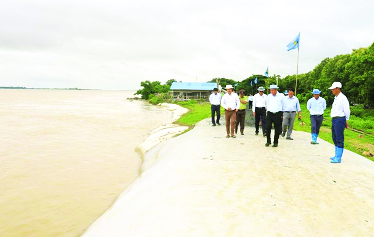 မြစ်ရေများမြင့်တက်လာမှုအခြေအနေအရ ရေဘေးကာကွယ်ရေးတာများ၏ ကြံ့ခိုင်မှုနှင့် ရေဘေးကာကွယ်ရေးလုပ်ငန်းများ စစ်ဆေးကြပ်မတ်ကူညီဆောင်ရွက်ရန် ဧရာဝတီတိုင်းဒေသကြီး၌ ရောက်ရှိနေသော စိုက်ပျိုးရေး၊ မွေးမြူရေးနှင့် ဆည်မြောင်းဝန်ကြီးဌာန ဒုတိယဝန်ကြီး ဦးဗိုလ်ဗိုလ်ကျော်သည် ဇူလိုင် ၁၈ ရက်နှင့် ၁၉ ရက်များတွင် ရေကြည်၊ သာပေါင်း၊ ဟင်္သာတနှင့် လေးမျက်နှာမြို့နယ်များ၏ ရေဘေးကာကွယ်မှုဧရိယာ ၃၀၀၃၈၄ ဧကကို ရေကြီးနစ်မြုပ်မှု ကာကွယ်ထားသည့် အလျား ၇၃ ဒသမ ၈၆၅ မိုင်ရှိ ငဝန်တာ၏ ကြံ့ခိုင်မှုနှင့် ရေဘေးကာကွယ်ရေး လုပ်ငန်းဆောင်ရွက်နေမှုများကို ကွင်းဆင်းကြည့်ရှုစစ်ဆေးသည်။