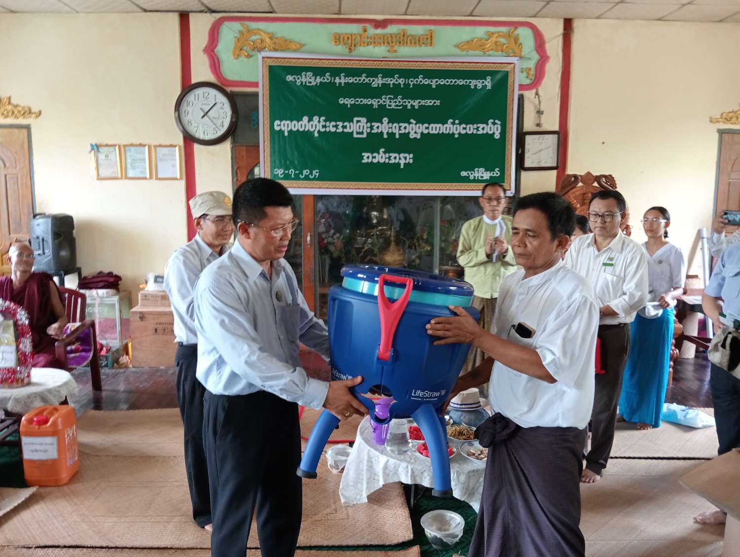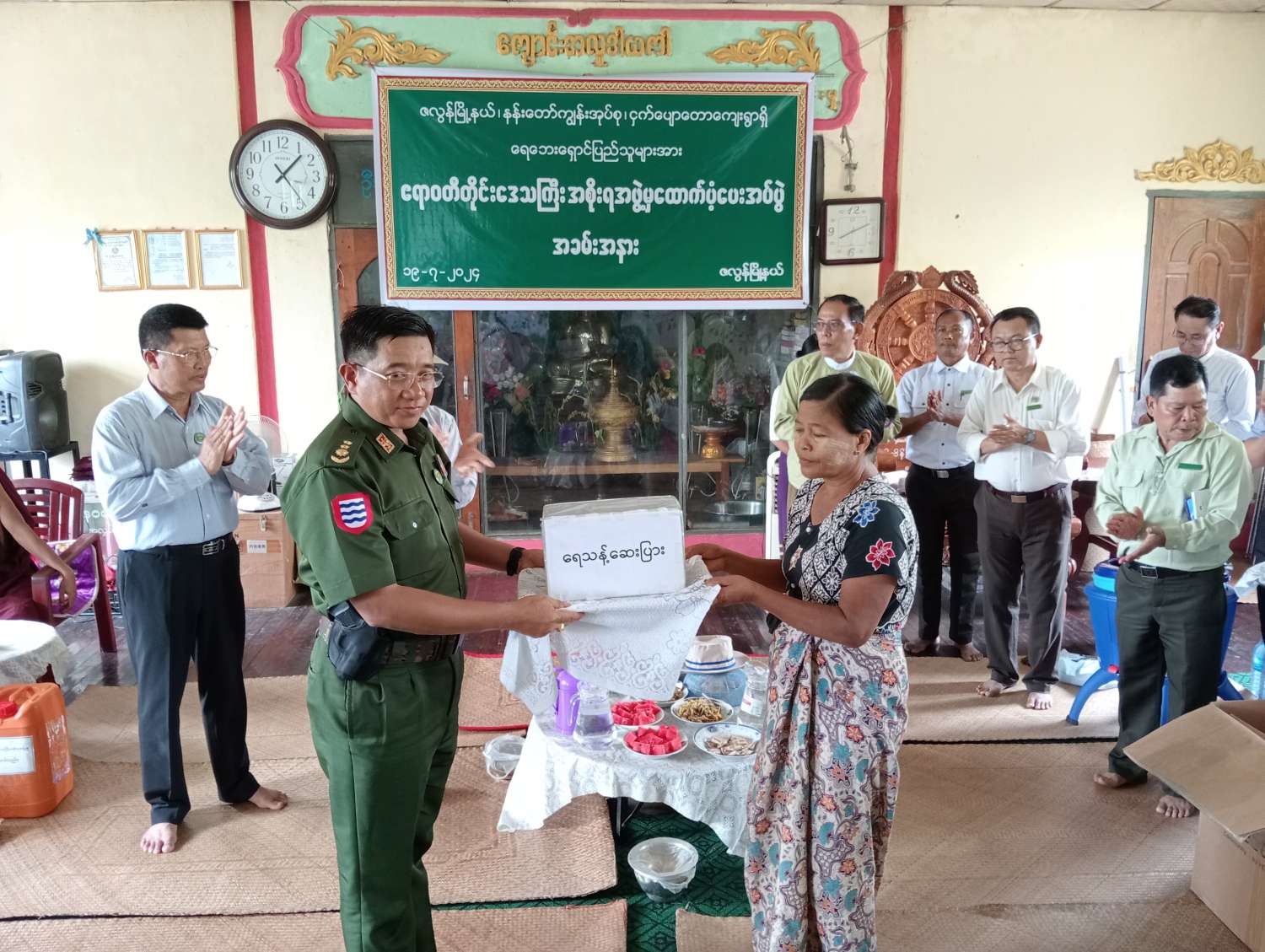 ဧရာဝတီတိုင်းဒေသကြီးအစိုးရအဖွဲ့ ဝန်ကြီးချုပ်ဦးတင်မောင်ဝင်းနှင့် တာဝန်ရှိသူများသည် ယနေ့နံနက်ပိုင်းက ဇလွန်မြို့ကျုံရှကျေးရွာအုပ်စုတွင် ဧရာဝတီမြစ်ရေကြီးမြင့်မှုကြောင့် တာတမံထိန်းသိမ်းရေးလုပ်ငန်းများ ဆောင်ရွက်ထားရှိမှု အခြေအနေအား ကြည့်ရှုစစ်ဆေး၍ ဆန်တန်းရပ်ကွက် ဖန်ခါးပင်ဘုန်းတော်ကြီးကျောင်းတွင် ယာယီရေဘေးသင့် ပြည်သူများအား အခြေခံစားသောက်ကုန်များ ထောက်ပံ့ပေးအပ်ခဲ့သည်။