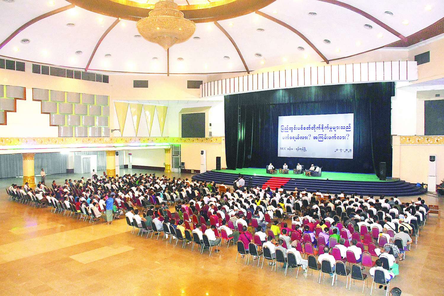 ပြည်တွင်း ပစ်ခတ်တိုက်ခိုက်မှုနှင့်ပတ်သက်၍ ဖက်ဒရယ်လား/အကြမ်းဖက်လား ခေါင်းစဉ်ဖြင့် စကားဝိုင်းဆွေးနွေးပွဲကို ယနေ့နံနက်ပိုင်းတွင် ရန်ကုန်မြို့ မရမ်းကုန်းမြို့နယ် မင်းဓမ္မလမ်းရှိ MCC ခန်းမ၌ကျင်းပရာ နိုင်ငံရေးပါတီများမှဥက္ကဋ္ဌနှင့် ပါတီဝင်များ၊ အမျိုးသားရေးအဖွဲ့များ၊ စိတ်ပါဝင်စားကြသည့် ပြည်သူများနှင့် ပြည်တွင်း/ပြည်ပမီဒီယာများ တက်ရောက်ကြသည်။
