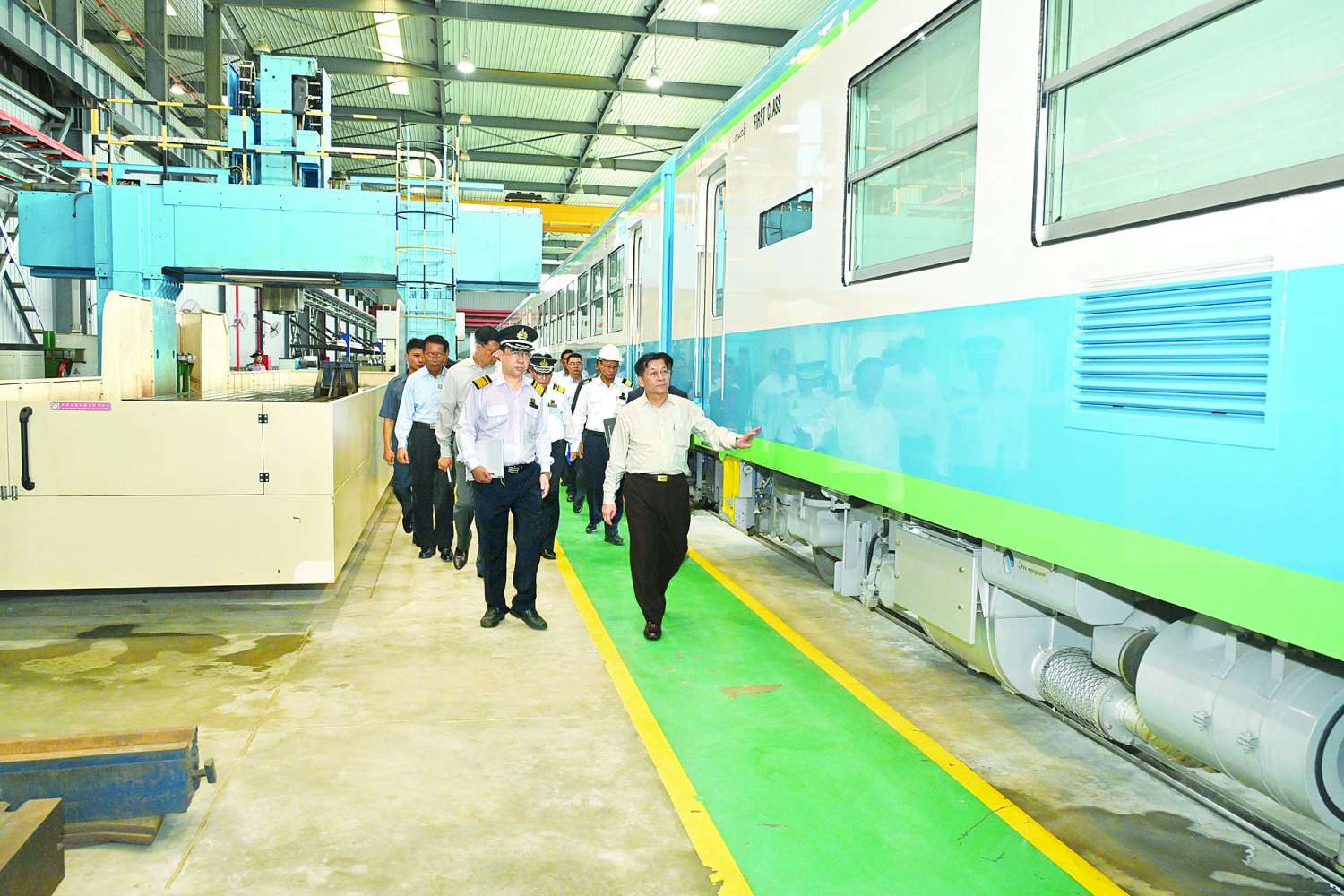 ထို့နောက် နိုင်ငံတော်စီမံအုပ်ချုပ်ရေးကောင်စီဥက္ကဋ္ဌ နိုင်ငံတော်ဝန်ကြီးချုပ်နှင့် အဖွဲ့ဝင်များသည် စက်ခေါင်းသစ်တပ်ဆင်ထုတ်လုပ်ရေးစက်ရုံ(နေပြည်တော်)အတွင်း ဂျပန်နိုင်ငံမှ ဝယ်ယူထားရှိသည့် ရန်ကုန်-မန္တလေးလမ်းပိုင်းတွင် ပြေးဆွဲမည့် DEMU တွဲဆိုင်းများနှင့် မြန်မာနိုင်ငံမှတည်ဆောက်ထားသည့် DEMU ရထားတွဲတို့အား လှည့်လည်ကြည့်ရှုစစ်ဆေးရာ တာဝန်ရှိသူများက လိုက်လံရှင်းလင်းတင်ပြမှုများအပေါ် နိုင်ငံတော်စီမံအုပ်ချုပ်ရေးကောင်စီဥက္ကဋ္ဌ နိုင်ငံတော်ဝန်ကြီးချုပ်က လိုအပ်သည်များလမ်းညွှန်မှာကြားသည်။