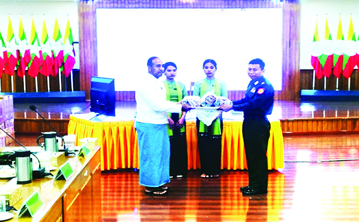 ထိုသို့ ပေးအပ်လျက်ရှိရာ ဩဂုတ် ၉ ရက် မွန်းလွဲပိုင်းတွင် ရှမ်းပြည်နယ်အစိုးရအဖွဲ့ စေတနာရှင်ပြည်သူလူထုနှင့် အလှူရှင်များက ဂုဏ်ပြုချီးမြှင့်ငွေများနှင့် စားသောက်ဖွယ်ရာများ ဂုဏ်ပြုပေးအပ်ခြင်းကို ရှမ်းပြည်နယ်အစိုးရအဖွဲ့ရုံး၊ အစည်းဝေးခန်းမ၌ ပြုလုပ်ရာ ရှမ်းပြည်နယ်ဝန်ကြီးချုပ်၊ အရှေ့ပိုင်းတိုင်းစစ်ဌာနချုပ် ဒုတိယတိုင်းမှူးနှင့် တာဝန်ရှိသူများ၊ ပြည်နယ်အစိုးရအဖွဲ့ဝင်ဝန်ကြီးများ၊ စေတနာရှင် အလှူရှင်များ တက်ရောက်ကြ သည်။