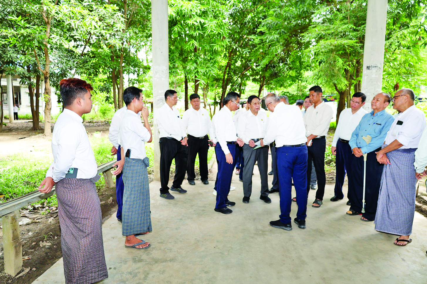 ယင်းနောက် နေပြည်တော်ရှိ ဝန်ထမ်းအိမ်ရာများနှင့် အဆောင်များရှိဝန်ထမ်းများ၏ စားဝတ်နေရေးအဆင်ပြေမှုရှိစေရေး၊ ရေ၊ မီး၊ မိလ္လာစနစ်များ ကောင်းမွန်မှုရှိစေရေးနှင့် ယခုမိုးတွင်းကာလတွင် ဖြစ်ပေါ်တတ်သော ရေကြီးရေလျှံမှုများ ဖြစ်ပေါ်လေ့ရှိသည့် အိမ်ရာအချို့ကို ကြည့်ရှုစစ်ဆေးပြီး ဝန်ထမ်းများ၊ ဝန်ထမ်းမိသားစုများနှင့် ရင်းရင်းနှီးနှီး တွေ့ဆုံကာ စားဝတ်နေရေး၊ ပညာရေးနှင့် ကျန်းမာရေးအခြေအနေများအား မေးမြန်း၍ လိုအပ်သည်များ ကူညီဖြည့်ဆည်းဆောင်ရွက်ပေးခဲ့ကြောင်း သိရသည်။