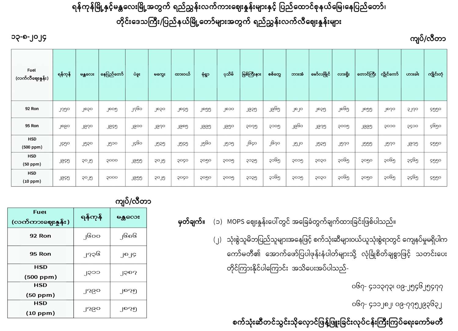 ရန်ကုန်မြို့နှင့် မန္တလေးမြို့အတွက် ရည်ညွှန်းလက်ကားဈေးနှုန်းများနှင့် ပြည်ထောင်စုနယ်မြေ နေပြည်တော်၊ တိုင်းဒေသကြီး/ပြည်နယ် မြို့တော်များအတွက် ရည်ညွှန်းလက်လီဈေးနှုန်းများ 08/13/2024