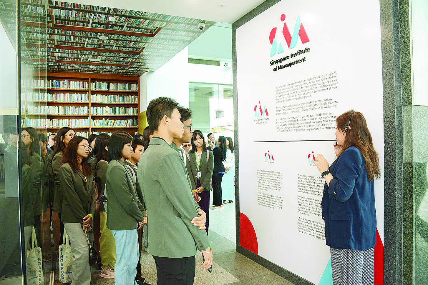 ထို့ပြင် Clementine Road ရှိ Singapore Institute of Management (SIM)သို့ ရောက်ရှိကြရာ Singapore Institute of Management မှ တာဝန်ရှိသူများက နွေးထွေးစွာကြိုဆိုကြကာ ထူးချွန် ကျောင်းသား ကျောင်းသူများကို အဆိုပါကျောင်းရှိ SIM Heritage Gallery ၌ Ms Celia Her က တက္ကသိုလ်ဆိုင်ရာ အချက်အလက်များကို ရှင်းလင်းပြောကြား၍ တက္ကသိုလ်တာဝန်ရှိသူများနှင့် အတူ မှတ်တမ်းတင်ဓာတ်ပုံရိုက်ကြသည်။
