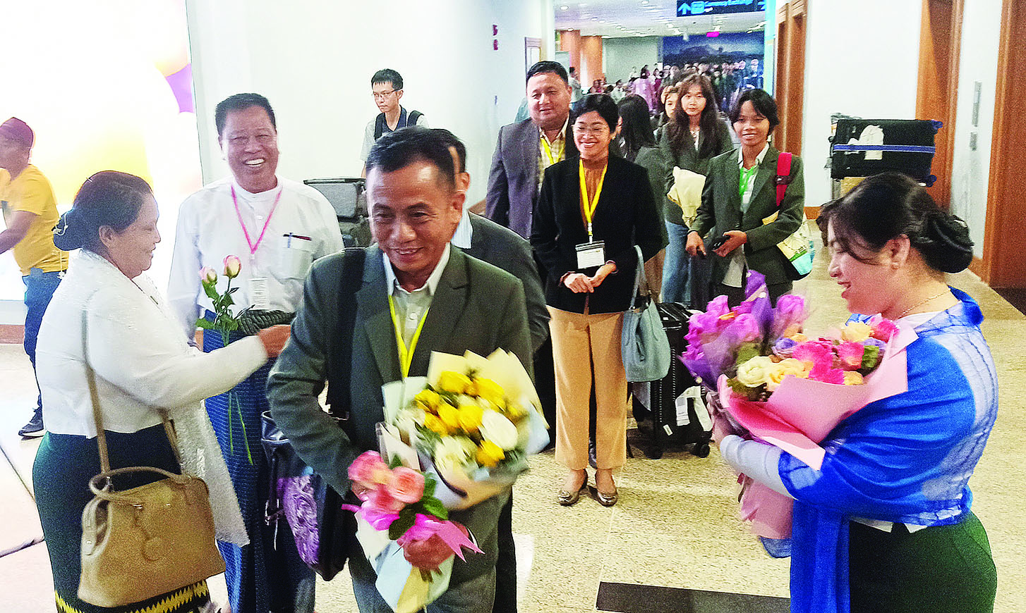 ယင်းနောက် အဆိုပါအဖွဲ့သည် မြန်မာအမျိုးသား လေကြောင်းလိုင်းဖြင့် စင်ကာပူနိုင်ငံမှ ထွက်ခွာကြရာ မွန်းလွဲပိုင်းတွင် ရန်ကုန်မြို့သို့ ပြန်လည်ရောက်ရှိကြပြီး တာဝန်ရှိသူများနှင့် ကျောင်းအုပ်ကြီးများ၊ ဆရာ ဆရာမများ၊ ကျောင်းသားမိဘများက ရန်ကုန်အပြည်ပြည်ဆိုင်ရာ လေဆိပ်၌ လာရောက်ကြိုဆိုကြကာ ထူးချွန်ကျောင်းသား ကျောင်းသူများသည် အုပ်ချုပ်သူများ၊ သက်ဆိုင်ရာမိဘများနှင့်အတူ နေရပ်အသီးသီးသို့ ပြန်လည်ထွက်ခွာသွားကြသည်။