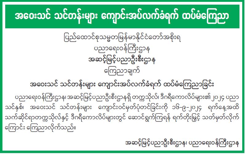 ဝန်ကြီးဌာန ကြေညာချက်များ