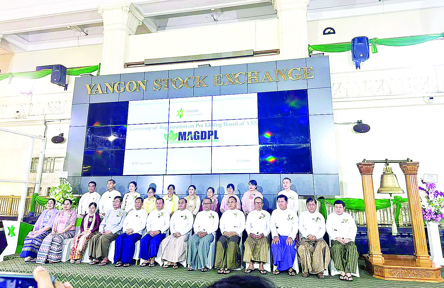 အဆိုပါကုမ္ပဏီရန်ကုန်စတော့ အိတ်ချိန်း၏ ဒုတိယဈေးကွက် (PLB) တွင် မှတ်ပုံတင်စာရင်းဝင်သည့်အခမ်းအနားကို ယနေ့နံနက် ၉ နာရီတွင် ရန်ကုန်မြို့ အမှတ်၊ ၂၄-၂၆၊ ဆူးလေဘုရားလမ်းရှိ ရန်ကုန်စတော့အိတ်ချိန်းခန်းမ၌ ကျင်းပရာ စီမံကိန်းနှင့်ဘဏ္ဍာရေးဝန်ကြီးဌာန ဒုတိယဝန်ကြီးနှင့် ငွေချေးသက်သေခံလက်မှတ်လုပ်ငန်းကြီးကြပ်ရေးကော်မရှင်ဥက္ကဋ္ဌ ဦးမင်းထွဋ်က ရန်ကုန် စတော့အိတ်ချိန်းတွင် စာရင်းဝင်လိုသော်လည်း Main Board အတွက် သတ်မှတ်ထားသည့် စာရင်းဝင်စံသတ်မှတ်ချက်များ မပြည့်မီသေးသဖြင့် ဝင်ခွင့်မရသေးသော အများပိုင်ကုမ္ပဏီများအတွက် ရန်ကုန်စတော့ အိတ်ချိန်း၏ ဒုတိယဈေးကွက် Second Board အဖြစ် တည်ထောင်ထားသော အကြိုစာရင်းဝင်ဈေးကွက် (Pre- listing Board-PLB)တွင် ဝင်ရောက်နိုင်ကြောင်း၊ PLB တွင် အတွေ့အကြုံများရယူပြီးမှ မူလဈေးကွက် (Main Board)ကို ဝင်ရောက်စာရင်းဝင်နိုင်ရေး ဆောင်ရွက်ခြင်းဖြင့် စာရင်းဝင်ကုမ္ပဏီများ ပိုမိုတိုးတက်လာပြီး ရင်းနှီးမြှုပ်နှံမှုအခွင့်အလမ်းများ ပိုမိုလာမည်ဖြစ်ကြောင်း၊ ယနေ့တွင် ရန်ကုန်စတော့အိတ်ချိန်း၏ ဒုတိယဈေးကွက်ဖြစ်သော အကြိုစာရင်းဝင်ဈေးကွက် (Pre- Listing Board – PLB)တွင် မြန်မာ့လယ်ယာထွက်ကုန်နှင့် အထွေထွေဖွံ့ဖြိုးတိုးတက်ရေးအများပိုင်ကုမ္ပဏီလီမိတက် (Myanma Agricultural and General Development Public Co., Ltd – MAGDPL)အား ပထမဆုံးမှတ်ပုံတင်စာရင်းဝင်ကုမ္ပဏီအဖြစ် စတင်လက်ခံသည့် အထိမ်းအမှတ်အခမ်းအနားနှင့်အတူ အစုရှယ်ယာများကို ပထမဆုံး စတင်အရောင်းအဝယ်ပြုလုပ်မည်ဖြစ်ပါကြောင်း ပြောကြားသည်။