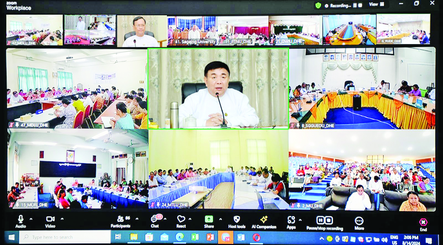 ပညာရေးဝန်ကြီးဌာန ပြည်ထောင်စုဝန်ကြီး ဒေါက်တာညွန့်ဖေသည် ယနေ့မွန်းလွဲပိုင်းတွင် နေပြည်တော်ရှိ ပညာရေးဝန်ကြီးဌာန အစည်းအဝေးခန်းမ၌ တက္ကသိုလ်ပါမောက္ခချုပ်များ၊ ပညာရေးဒီဂရီကောလိပ် ကျောင်းအုပ်ကြီးများ၊ တိုင်းဒေသကြီး၊ ပြည်နယ်ပညာရေးမှူးများနှင့် တွေ့ဆုံသည်။