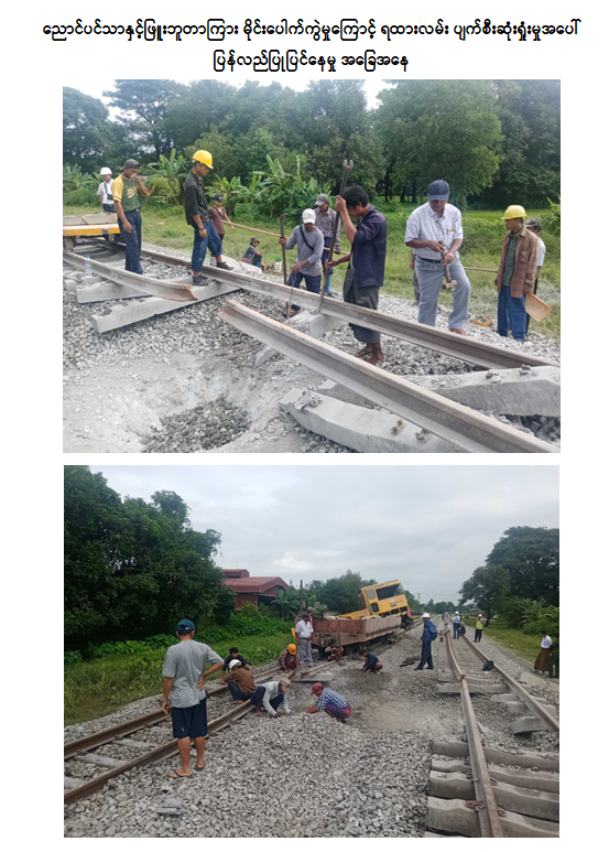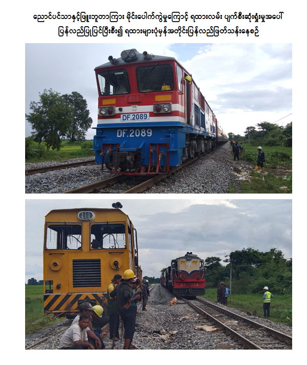 အကြမ်းဖက်သောင်းကျန်းသူများအနေဖြင့် နိုင်ငံတော်ပိုင်ရထားစက်ခေါင်းနှင့် တွဲများ၊ ရထားလမ်းနှင့် တံတားများ၊ ခရီးသည်များနှင့် ကုန်စည်များ ထိခိုက်ပျက်စီးဆုံးရှုံးစေရေး၊ ရထားစီးခရီးသွားပြည်သူများအနေဖြင့် ရထားဖြင့် ခရီးသွားလာရာတွင် ကိုယ်စိတ်နှလုံးချမ်းမြေ့ပြီး အသက်အန္တရာယ်ကင်းရှင်းစွာဖြင့် လုံခြုံစိတ်ချစွာသွားလာနိုင်မှုမရှိစေရေးနှင့် ရန်ကုန်-မန္တလေးရထားလမ်း အဆင့်မြှင့်တင်ရေးစီမံကိန်း နှောင့်နှေးကြန့်ကြာစေရန်အတွက် ရည်ရွယ်ပြီး ယခုကဲ့သို့ အကြိမ်ကြိမ် ကျူးလွန်ဖျက်ဆီးနေကြခြင်းဖြစ်သော်လည်း နိုင်ငံတော်အစိုးရအနေဖြင့် အများပြည်သူခရီးသွားလာမှုနှင့် ကုန်စည်ပို့ဆောင်မှု အဆင်ပြေချောမွေ့မြန်ဆန်စေရေးအတွက် ရထားလမ်းနှင့် အခြေခံအဆောက်အဦများ ပိုမိုတိုးတက်ကောင်းမွန်လာစေရေး၊ ရထားပို့ဆောင်ရေးစနစ် အဆင့်မြှင့်တင်ရေးစီမံကိန်းလုပ်ငန်းများကို ရည်မှန်းချက်ထားရှိ၍ အစဉ်တစိုက်အလေးထား စီမံဆောင်ရွက်ပေးလျက်ရှိကြောင်း သတင်းရရှိသည်။