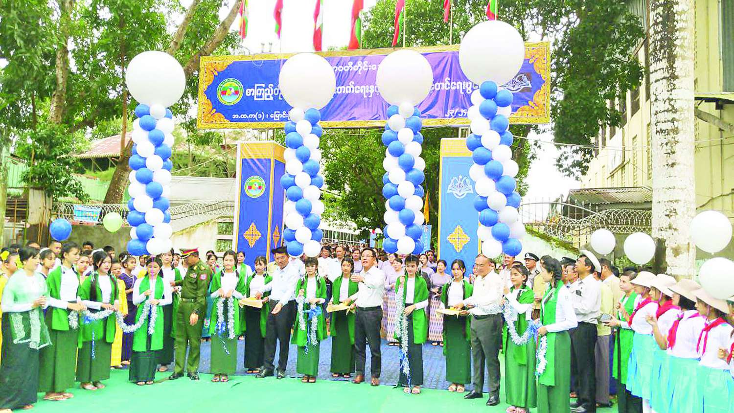 ဆက်လက်၍ အခမ်းအနားဒုတိယပိုင်းအစီအစဉ်ကို အဆိုပါကျောင်းခန်းမ၌ကျင်းပရာ အမှတ် (၁) အခြေခံပညာ အထက်တန်းကျောင်းမှ ကျောင်းသား/ကျောင်းသူများက “အလှဆုံးပန်းများပွင့်ကြပြီ” သီချင်းဖြင့် သီဆိုဖွင့်လှစ်ပေးပြီး “နိုင်ငံအကျိုးအတွက် မှန်းမျှော်ရည် ခိုင်မာတိုးတက်စေရမည်” Video Clip ကို ပြသသည်။