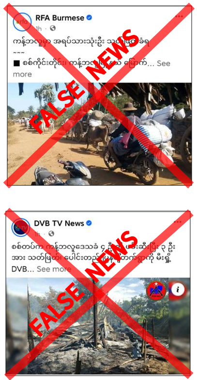 စစ်ကိုင်းတိုင်းဒေသကြီး၊ ကန့်ဘလူမြို့နယ်၊ ဦးကင်းကြည်ကျေးရွာကို ဩဂုတ် ၂၅ ရက်နေ့က လုံခြုံရေးတပ်ဖွဲ့ဝင်များမှ ဝင်ရောက်စီးနင်းပြီး ပြည်သူ ၄ ဦးကို ဖမ်းဆီးကာ ၃ ဦးကို သတ်ဖြတ်ခဲ့ကြောင်းနှင့် ၎င်းကျေးရွာမှ နေအိမ် ၅ လုံးကိုလည်း မီးရှို့ဖျက်ဆီးသွားခဲ့ကြောင်း သတင်းတု၊ သတင်းအမှားများကို တရားမဝင်ပြည်ဖျက်မီဒီယာများက မဟုတ်မမှန် လှုံ့ဆော်ဝါဒဖြန့်ဝေနေသည်ကို တွေ့ရှိရသည်။