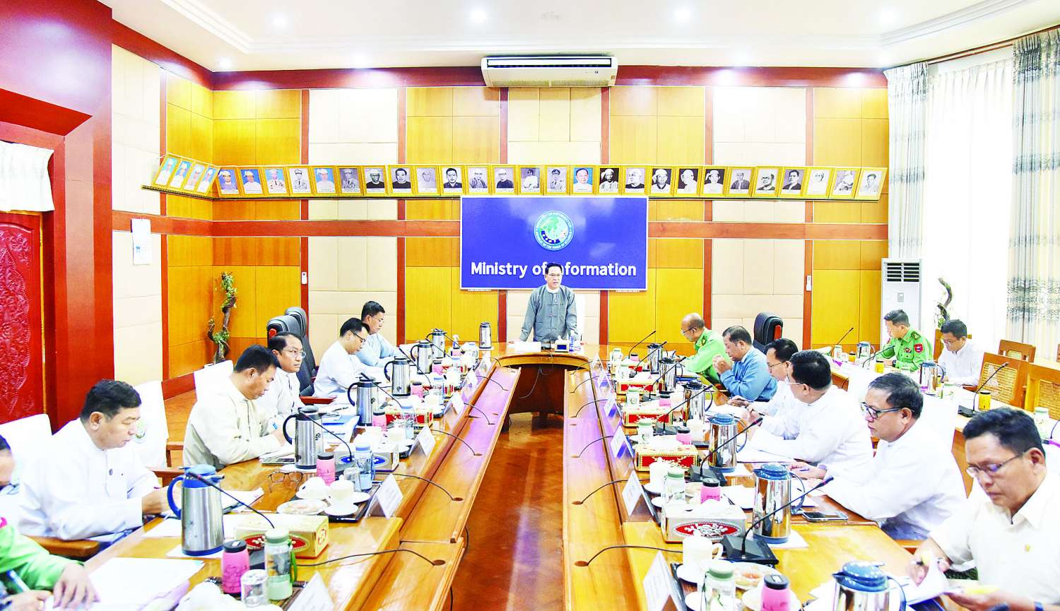 ၂၀၂၄ ခုနှစ် ပဉ္စမအကြိမ် အမျိုးသားအားကစားပွဲတော် အောင်မြင်စွာကျင်းပနိုင်ရေးအတွက် ဖွင့်ပွဲ၊ ပိတ်ပွဲအခမ်းအနားကျင်းပရေးလုပ်ငန်းကော်မတီ တတိယအကြိမ် လုပ်ငန်းညှိနှိုင်းအစည်းအဝေးကို ယနေ့မွန်းလွဲပိုင်းတွင် နေပြည်တော်ရှိ ပြန်ကြားရေးဝန်ကြီးဌာန အစည်းအဝေးခန်းမ၌ ကျင်းပသည်။