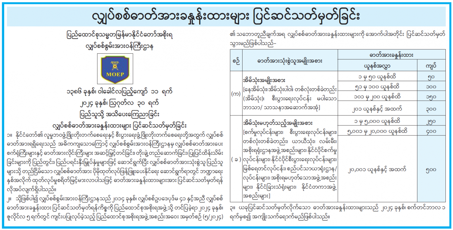 လျှပ်စစ်ဓာတ်အားခနှုန်းထားများ ပြင်ဆင်သတ်မှတ်