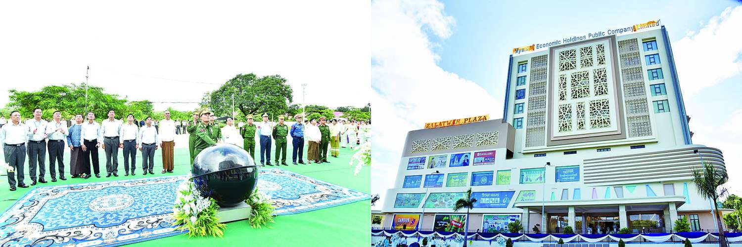 ထို့နောက် မြန်မာ့စီးပွားရေးဦးပိုင်အများနှင့် သက်ဆိုင်သောကုမ္ပဏီလီမိတက်ဥက္ကဋ္ဌ ဒုတိယဗိုလ်ချုပ်ကြီးဆန်းဦးက မြန်မာ့စီးပွားရေးဦးပိုင်အများနှင့် သက်ဆိုင်သော ကုမ္ပဏီလီမိတက် (ရုံးချုပ်) အဆောက်အဦနှင့် ဇလပ်ဝါပလာဇာဆိုင်းဘုတ်အား စက်ခလုတ်နှိပ်၍ ဖွင့်လှစ်ပေးပြီး ဖွင့်ပွဲအခမ်းအနားသို့တက်ရောက်လာသည့် တာဝန်ရှိသူများနှင့် ဖွင့်ပွဲအထိမ်းအမှတ်အဖြစ် စုပေါင်းအမှတ်တရ ဓာတ်ပုံရိုက်ကြသည်။