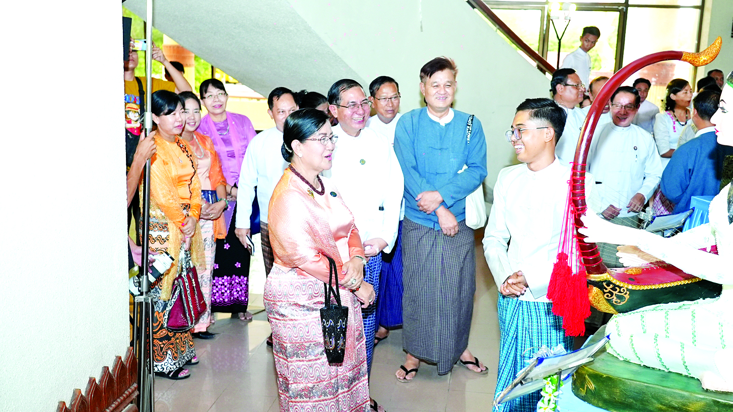 ထို့နောက် ဒုတိယဝန်ကြီးက အမှာစကားပြောကြားပြီး ဂီတ၊ သဘင်၊ ရုပ်ရှင်နှင့် ပြဇာတ်ပညာရပ်များကို သင်ကြားလျက်ရှိသော ကျောင်းသား ကျောင်းသူများ၏ စင်တင်တင်ဆက်မှုများဖြစ်သော ပြည်ကန်တော်အလှ နတ်မောင်နှမယိမ်းအက၊ ပဏာမဧည့်ခံဂီတသံ (အမျိုးသား+အမျိုးသမီးမင်္ဂလာဆိုင်း)၊ တေးဂီတအမွေမန္တလာမြေ (လူချွန်လူကောင်း)၊ ပေါင်းစည်းခြင်းရဲ့အလှ၊ လှပစီရီအက ပန်းချီယိမ်းအက၊ ထိန်းသိမ်းစို့လေ ယဉ်ကျေးမှုအမွေ (ကျောင်းဆင်းဂုဏ်ပြုတေး-ဂီတ+သဘင်)၊ ကကြိုးစုံလင်မင်းသားအသွင် ယိမ်းအက၊ စည်းလုံးစွမ်းပကား တို့အင်အား (ရုပ်သေး)၊ စုစည်းတီးက သွေးချင်းအလှ (ဂီတ+သဘင်)၊ မင်းကနောင်နှင့် ချစ်ခြင်းမေတ္တာ၊ ဖြစ်ချင်အုံးဟဲ့ . . . မင်းသား (ပြဇာတ်)၊ ဆာယာအန္တိ (ကျောင်းဆင်းလက်ရာမွန်ဇာတ်ကား) တို့ကို ကြည့်ရှု အားပေးသည်။