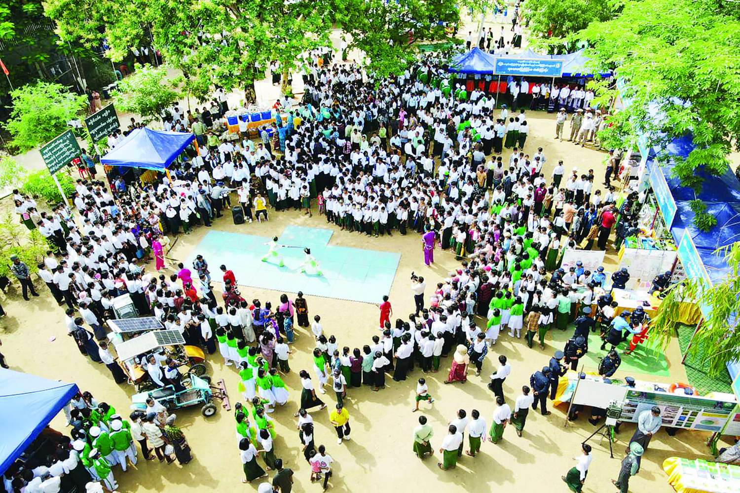 ထို့နောက် မင်းဘူးမြို့ အမှတ် (၁) အခြေခံပညာအထက်တန်းကျောင်းမှ ကျောင်းသူများက “ဗိုလ်ရှုသဘင်” သီချင်းဖြင့်လည်းကောင်း၊ “ပညာဘဏ်တိုက် စာကြည့်တိုက်သို့ သွားကြစို့” သီချင်းဖြင့်လည်းကောင်း၊ “ဇာတိမာန်” သီချင်းဖြင့်လည်းကောင်း ဖျော်ဖြေတင်ဆက်ကြသည်။
