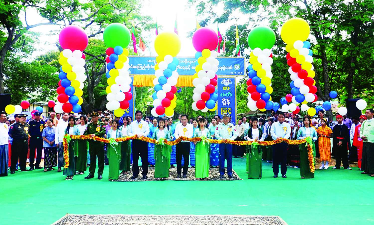 အခမ်းအနားတွင် ကျောင်းစာကြည့်တိုက်များ ဖွံ့ဖြိုးတိုးတက်ရေးနှင့် စာဖတ်ရှိန်မြှင့်တင်ရေးပွဲတော်မုခ်ဦးကို ပြန်ကြား​ရေးဝန်ကြီးဌာန ပြည်ထောင်စုဝန်ကြီး ဦးမောင်မောင်အုန်း၊ မကွေးတိုင်းဒေသကြီးဝန်ကြီးချုပ် ဦးတင့်လွင်၊ နယ်​မြေခံတပ်နယ်မှ ဗိုလ်မှူးချုပ် သိန်းထွန်းဦး၊ လုံခြုံရေးနှင့်နယ်စပ်ရေးရာဝန်ကြီး ဗိုလ်မှူးကြီး မိုးမင်းသိန်း၊ လူမှုရေးရာဝန်ကြီး ဦးမျိုးမြင့်တို့က ဖဲကြိုးဖြတ်ဖွင့်လှစ်ပေးပြီး တက်ရောက်လာကြသူများနှင့် စုပေါင်းမှတ်တမ်းတင်ဓာတ်ပုံရိုက်ကာ ပါဝင်ကူညီခဲ့သည့် ပန်းဖွားအဖွဲ့၊ ဘင်ခရာအဖွဲ့၊ အိုးစည်အဖွဲ့တို့အား ဂုဏ်ပြုချီးမြှင့်ငွေများပေးအပ်သည်။