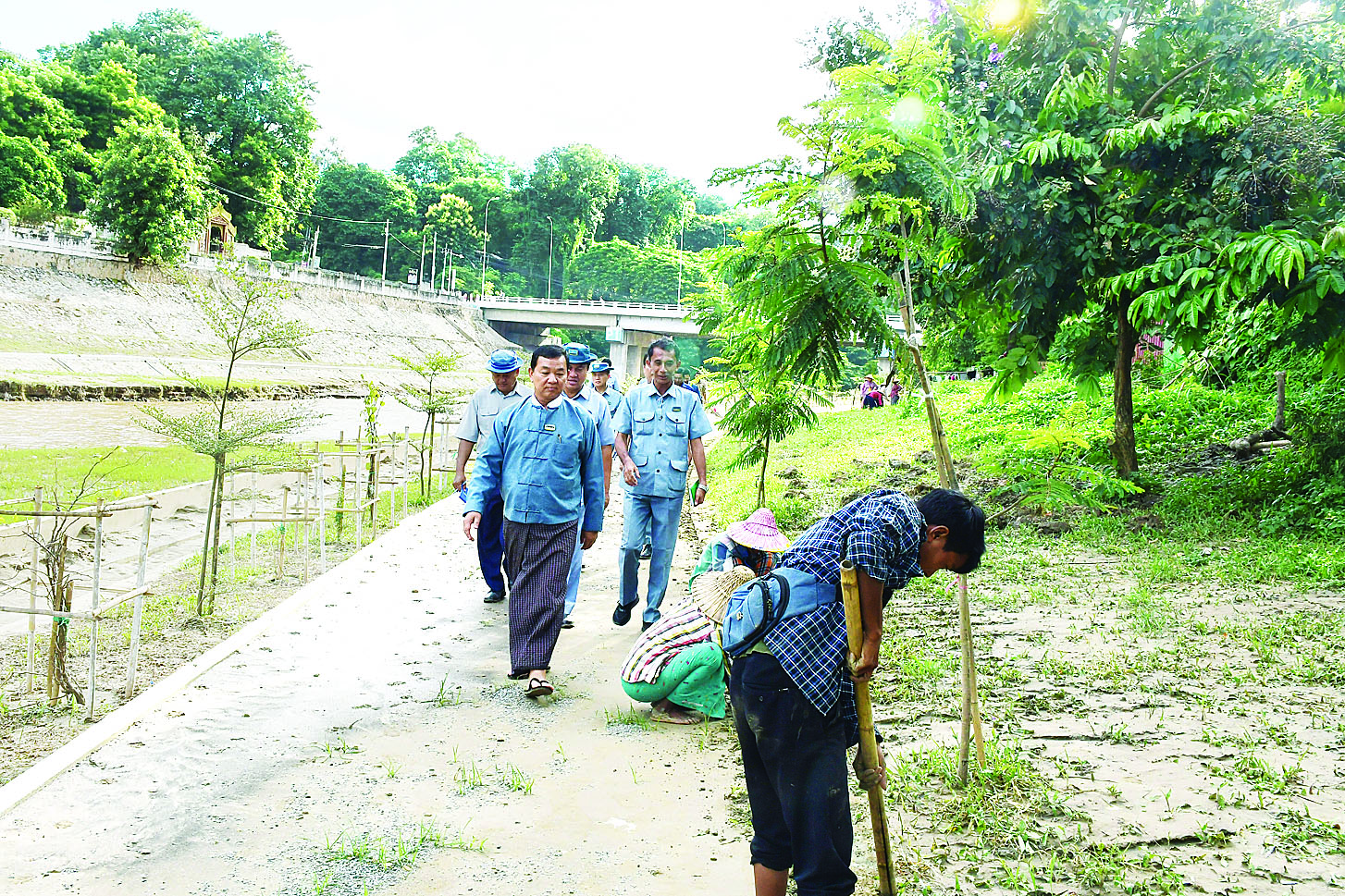 ထို့ပြင် အဝင်လမ်းအား ရိစာခင်းရန် ပြင်ဆင်ဆောင်ရွက်နေမှု၊ တံတားအောက်နှင့် ချောင်းပတ်ဝန်းကျင်တွင် သန့်ရှင်းရေးနှင့် မြက်ချုံရှင်းလင်းခြင်းလုပ်ငန်း ဆောင်ရွက်နေမှု အခြေအနေများကို ကြည့်ရှုစစ်ဆေးပြီး သစ်ပင်ပန်းပင်များကို ပြန်လည်ပြုစုထိန်းသိမ်းရန်နှင့် ရေပြန်လည် ကျဆင်းပြီဖြစ်၍ ချောင်းတစ်လျှောက်သန့်ရှင်းရေးလုပ်ငန်းများ အမြန်ဆုံးပြီးစီးအောင် ဆောင်ရွက်ရန်၊ မြက်ခင်းများပြန်လည်စိုက်ပျိုးနိုင်ရေး ဆက်လက်ဆောင်ရွက်ရန်နှင့် ငလိုက်ချောင်းဘေးဝဲယာတစ်လျှောက်တွင် အမြဲသန့်ရှင်းသာယာလှပနေစေရေး သက်ဆိုင်ရာဌာနများက အလေးထားဆောင်ရွက်ကြရန် မှာကြားသည်။