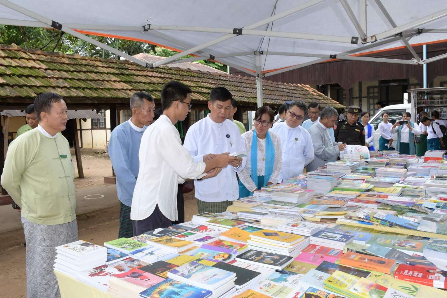 ထို့နောက် ပဲခူးတိုင်းဒေသကြီးအစိုးရအဖွဲ့ လူမှုရေးဝန်ကြီး ဦးမျိုးအောင်က တောင်ငူမြို့နယ်အတွင်းရှိ ကျောင်းစာကြည့်တိုက်များအတွက် စာအုပ်များကို ပေးအပ်လှူဒါန်းရာ ခရိုင်ပညာရေးမှူး ဒေါက်တာ‌နော်ဥမ္မာထွန်းက လက်ခံရယူသည်။