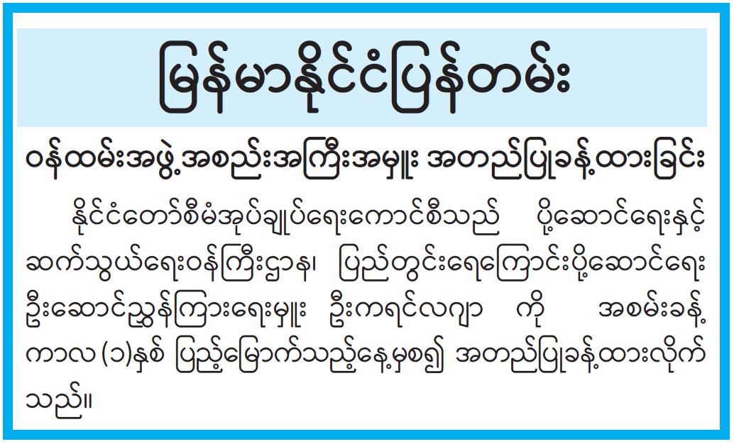 ဝန်ကြီးဌာန ကြေညာချက်များ