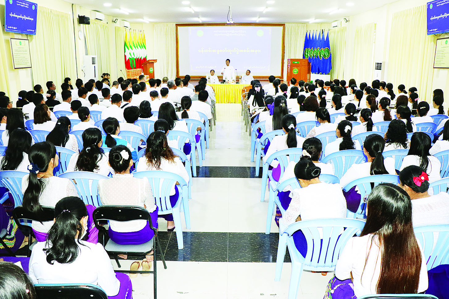 ဒုတိယဝန်ကြီး ဦးမြင့်စိုး ဝန်ကြီးဌာနကိုယ်စားပြု တက္ကသိုလ်ဘောလုံးအသင်းများမှ အားကစားသမား၊ အသင်းအုပ်ချုပ်သူနည်းပြများ၊ ဝန်ထမ်းများနှင့် တွေ့ဆုံအားပေးစကားပြောကြား
