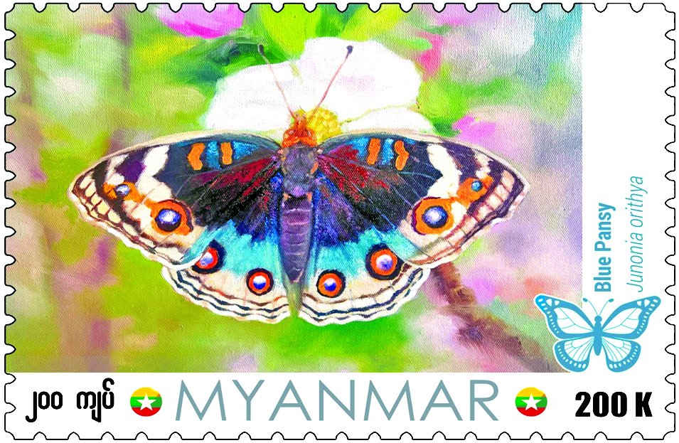 ပို့ဆောင်ရေးနှင့်ဆက်သွယ်ရေးဝန်ကြီးဌာန၊ မြန်မာ့စာတိုက်လုပ်ငန်းမှ သယံဇာတနှင့် သဘာဝပတ်ဝန်းကျင်ထိန်းသိမ်းရေးဝန်ကြီးဌာနက မြန်မာနိုင်ငံ၌ တွေ့ရှိရသော လိပ်ပြာမျိုးစိတ်အဖြစ် မှတ်တမ်းတင်သဘောထားမှတ်ချက်ပြုထားသည့် “Blue Pansy” လိပ်ပြာပုံ (၂၀၀ ကျပ်တန်) စာပို့တံဆိပ်ခေါင်းသစ် တစ်မျိုးအား ၂၀၂၄ ခုနှစ်၊ စက်တင်ဘာ (၉) ရက်၊ မြန်မာသက္ကရာဇ် ၁၃၈၆ ခုနှစ်၊ တော်သလင်းလဆန်း (၇) ရက် (တနင်္လာနေ့) နံနက် ၉ နာရီခွဲမှ စတင်၍ နေပြည်တော်ဗဟိုစာတိုက်ကြီး၊ ရန်ကုန်စာတိုက်ကြီး၊ မန္တလေးစာတိုက်ကြီးတို့နှင့် တိုင်းဒေသကြီး/ ပြည်နယ်များရှိ စာတိုက်ကြီးများတွင် တစ်ပြိုင်တည်းရောင်းချပေးသွားမည်ဖြစ်သည်။