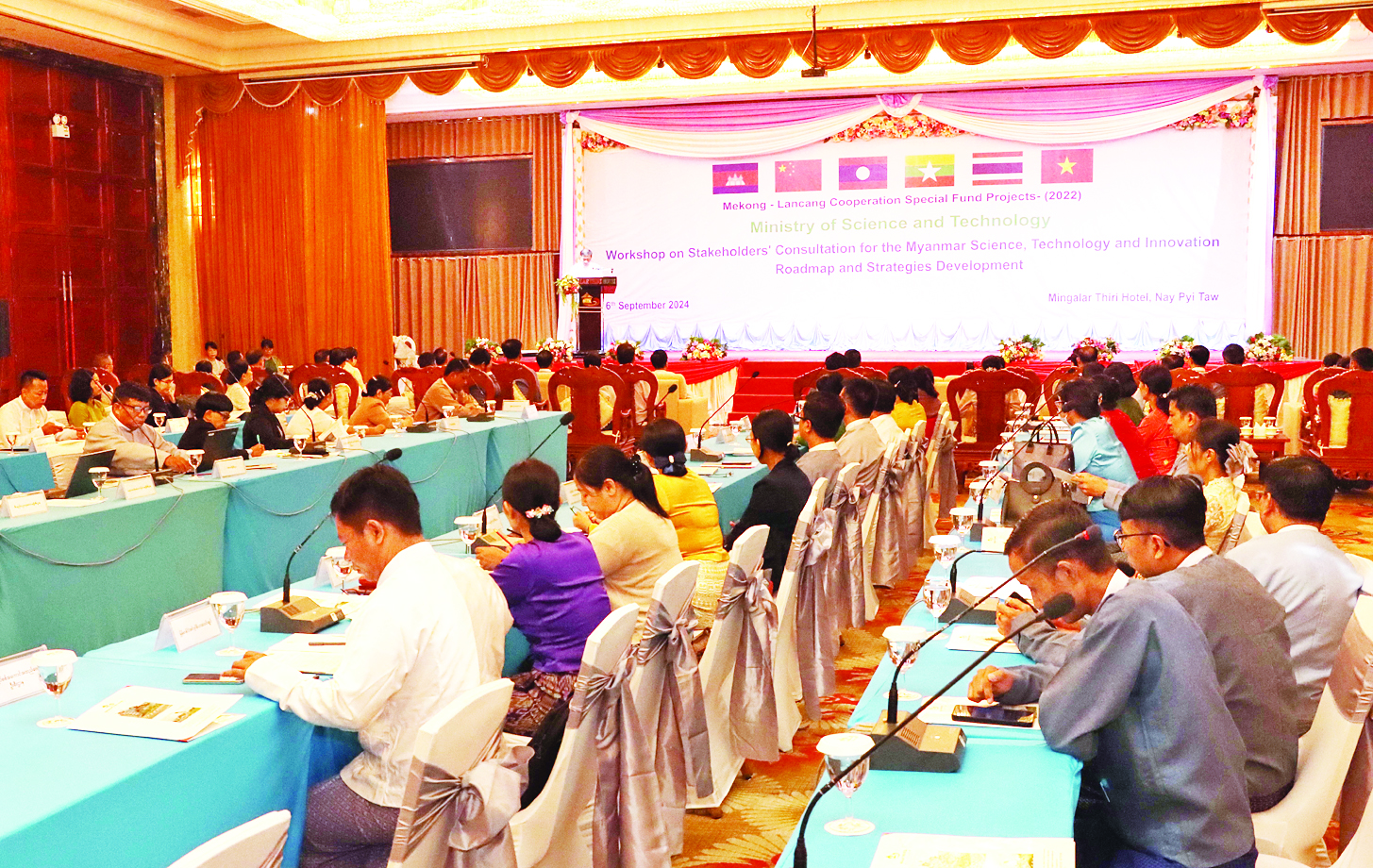 မဲခေါင်-လန်ချန်းပူးပေါင်းဆောင်ရွက်မှု အထူးရန်ပုံငွေစီမံကိန်း ၂၀၂၂ ဖြင့် ဆောင်ရွက်သော အမျိုးသားအဆင့် သိပ္ပံ၊ နည်းပညာနှင့် ဆန်းသစ်တီထွင်မှုဆိုင်ရာ လမ်းပြမြေပုံနှင့် မဟာဗျူဟာများ ပေါ်ထွက်နိုင်ရန်အတွက် သိပ္ပံနှင့် နည်းပညာဆိုင်ရာ လက်ရှိဆောင်ရွက်နေမှုများနှင့် အမျိုးသားလူမှုစီးပွား ရေရှည်ဖွံ့ဖြိုးတိုးတက်ရေးကို အထောက်အကူပေးနေမှုများကို Stakeholders များနှင့် ညှိနှိုင်းဆွေးနွေးနိုင်ရန်အတွက် အမျိုးသားအဆင့် သိပ္ပံ၊ နည်းပညာနှင့် ဆန်းသစ်တီထွင်မှု လမ်းပြမြေပုံနှင့် မဟာဗျူဟာများ ထွက်ပေါ်လာစေရေးအတွက် ဆက်စပ်ဝန်ကြီးဌာနများ၊ အဖွဲ့အစည်းများနှင့် အလုပ်ရုံဆွေးနွေးပွဲကို နေပြည်တော် မင်္ဂလာသီရိဟိုတယ်၌ ယနေ့နံနက်ပိုင်းတွင် ကျင်းပသည်။