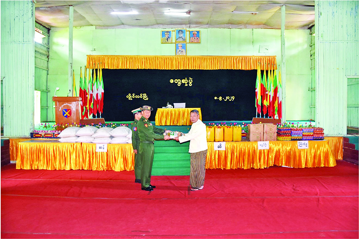 ထိုသို့တွေ့ဆုံရာတွင် တိုင်းမှူးက အမှာစကားပြောကြားပြီး စစ်မှုထမ်းဟောင်းအဖွဲ့ဝင်များနှင့် မိသားစုဝင်များ၏ တင်ပြချက်များအပေါ် လိုအပ်သည်များ ညှိနှိုင်းဆောင်ရွက်ပေးကာ ဆန်၊ ဆီနှင့် စားသောက်ဖွယ်ရာများ ပေးအပ်ပြီး ရင်းရင်းနှီးနှီးလိုက်လံနှုတ်ဆက်သည်။