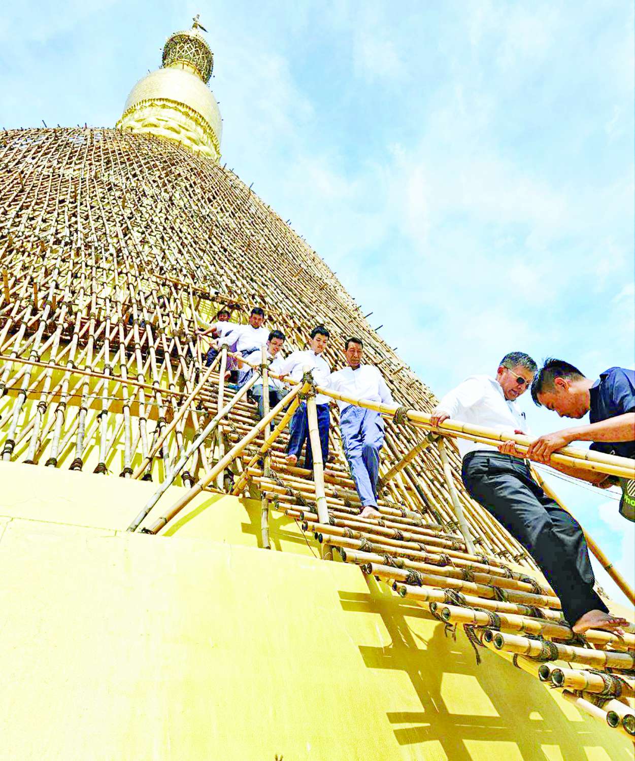 သာသနာရေးနှင့် ယဉ်ကျေးမှုဝန်ကြီးဌာန ပြည်ထောင်စုဝန်ကြီး ဦးတင်ဦးလွင်သည် အမြဲတမ်းအတွင်းဝန်၊ ဥပ္ပါတသန္တိစေတီတော် ဂေါပကအဖွဲ့ အလှည့်ကျသဘာပတိ၊ တာဝန်ရှိသူများနှင့်အတူ ယနေ့နံနက်ပိုင်းတွင် နေပြည်တော် ဥပ္ပါတသန္တိစေတီတော်မြတ်ကြီး ပထမဖောင်းရစ်အား ရွှေစင်ရွှေပြားကပ်လှူခြင်း ဆောင်ရွက်နေမှုကို ကြည့်ရှုစစ်ဆေးသည်။