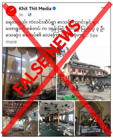 ပဲခူးတိုင်းဒေသကြီး၊ ရေတာရှည်မြို့နယ်၊ ကဲလင်းဆိပ်ကျေးရွာ စာသင်ကျောင်းနှင့် ရှားတောကျေးရွာတို့ကို လုံခြုံရေးတပ်ဖွဲ့ဝင်များက စက်တင်ဘာ ၈ ရက်တွင် ဒရုန်းဖြင့်ဗုံးကြဲတိုက်ခိုက်ခဲ့ကြောင်း နှင့် အဆိုပါတိုက်ခိုက်မှုကြောင့် ပြည်သူ ၃ ဦး သေဆုံးကာ ၁၂ ဦး ထိခိုက်ဒဏ်ရာရရှိခဲ့သည်ဟု လုပ်ကြံရေးသားထားသည့် သတင်းတု၊ သတင်းအမှားများကို တရားမဝင်ပြည်ဖျက်မီဒီယာများက လှုံ့ဆော်ဝါဒ ဖြန့်ဝေနေကြောင်း တွေ့ရှိရသည်။