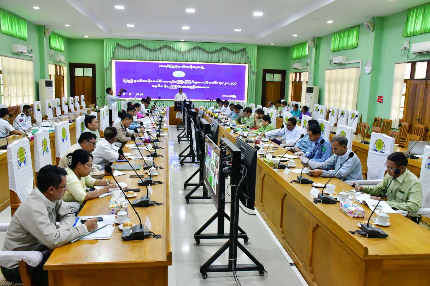 ထို့နောက် ကရင်ပြည်နယ်သန်းခေါင်စာရင်းကြီးကြပ်မှုကော်မတီအတွင်းရေးမှူး ပြည်နယ်လူဝင်မှုကြီးကြပ်ရေးနှင့်ပြည်သူ့အင်အားဝန်ကြီးဌာန ပြည်နယ်ဦးစီးမှူး ဦးကျော်မြင့်က သန်းခေါင်စာရင်းကောက်ယူရေးဆိုင်ရာ လုပ်ငန်များနှင့်ပတ်သက်၍ သန်းခေါင်စာရင်းကောက်ယူခြင်းဆိုင်ရာ လမ်းညွှန်ချက်များ၊ သန်းခေါင်စာရင်းကောက်ယူနိုင်မည့် ကောက်ကွက်စာရင်းချုပ်၊ စာရင်းစစ်၊ စာရင်းကောက်ခန့်ထားမှုနှင့် အချိန်မီအစားထိုးခန့်ထားနိုင်ရေးစီမံဆောင်ရွက်ထားမှု၊ ယခင်အပတ် အစည်းအဝေးဆုံးဖြတ်ချက်များအပေါ် လိုက်နာဆောင်ရွက်ပြီးစီးမှု အခြေအနေများကို ရှင်းလင်းတင်ပြပြီး ပြည်နယ်သန်းခေါင်စာရင်းကြီးကြပ်မှုကော်မတီဝင်များ၊ ပြည်နယ်သန်းခေါင်စာရင်းကော်မတီဝင်များက ကောက်ကွက်များတိုးချဲ့စီမံဆောင်ရွက်နိုင်ရေးနှင့် လုံခြုံရေးဆိုင်ရာစီမံဆောင်ရွက်ထားမှုအခြေအနေများကို ရှင်းလင်းတင်ပြကာ မြို့နယ်သန်းခေါင်စာရင်းကော်မတီဥက္ကဋ္ဌများက သက်ဆိုင်ရာမြို့နယ်များအလိုက် အတည်ပြုခန့်ထား ရမည့်စာရင်းစစ်စာရင်းကောက်အရေအတွက်၊ သန်းခေါင်စာရင်းမကောက်ယူနိုင်သည့် ကျေးရွာအုပ်စုများ၊ ကောက်ယူနိုင်သည့် ကျေးရွာအုပ်စုများ၊ စာရင်းစစ်၊ စာရင်းကောက်များတာဝန်ပေးအပ်ထားမှု အစရှိသည့် သန်းခေါင်စာရင်းကောက်ယူနိုင်ရေးဆိုင်ရာကိစ္စရပ်များကို ဆွေးနွေးတင်ပြကြသည်။