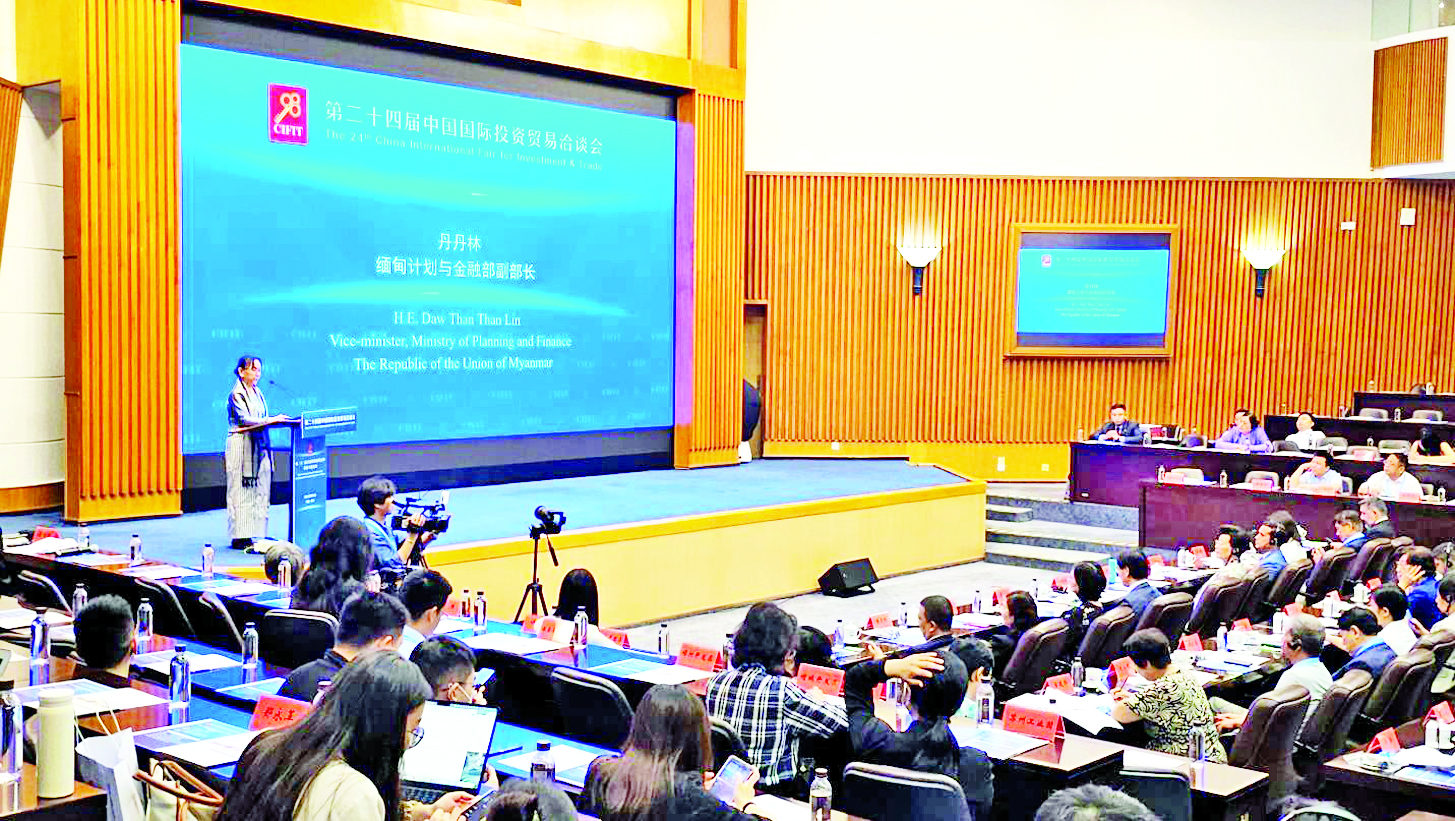 စီမံကိန်းနှင့်ဘဏ္ဍာရေးဝန်ကြီးဌာန ဒုတိယဝန်ကြီးဒေါ်သန်းသန်းလင်းဦးဆောင်သော မြန်မာကိုယ်စားလှယ်အဖွဲ့သည် တရုတ်ပြည်သူ့သမ္မတနိုင်ငံ အပြည်ပြည်ဆိုင်ရာကုန်သွယ်မှုနှင့် ရင်းနှီးမြှုပ်နှံမှုဆိုင်ရာ ပြပွဲကျင်းပရေးကော်မတီ၏ဖိတ်ကြားချက်အရ တရုတ်ပြည်သူ့သမ္မတနိုင်ငံရှမန်မြို့၌ စက်တင်ဘာ ၇ ရက်မှ ၁၁ ရက် အထိကျင်းပလျက်ရှိသည့် (၂၄) ကြိမ်မြောက် တရုတ်အပြည်ပြည်ဆိုင်ရာရင်းနှီးမြှုပ်နှံမှုနှင့် ကုန်စည်ပြပွဲ (The 24th China International Fair for Investment and Trade-CIFIT) သို့ တက်ရောက်ခဲ့ပြီး ယနေ့ညနေပိုင်းတွင် ရန်ကုန်မြို့သို့ ပြန်လည်ရောက်ရှိသည်။
