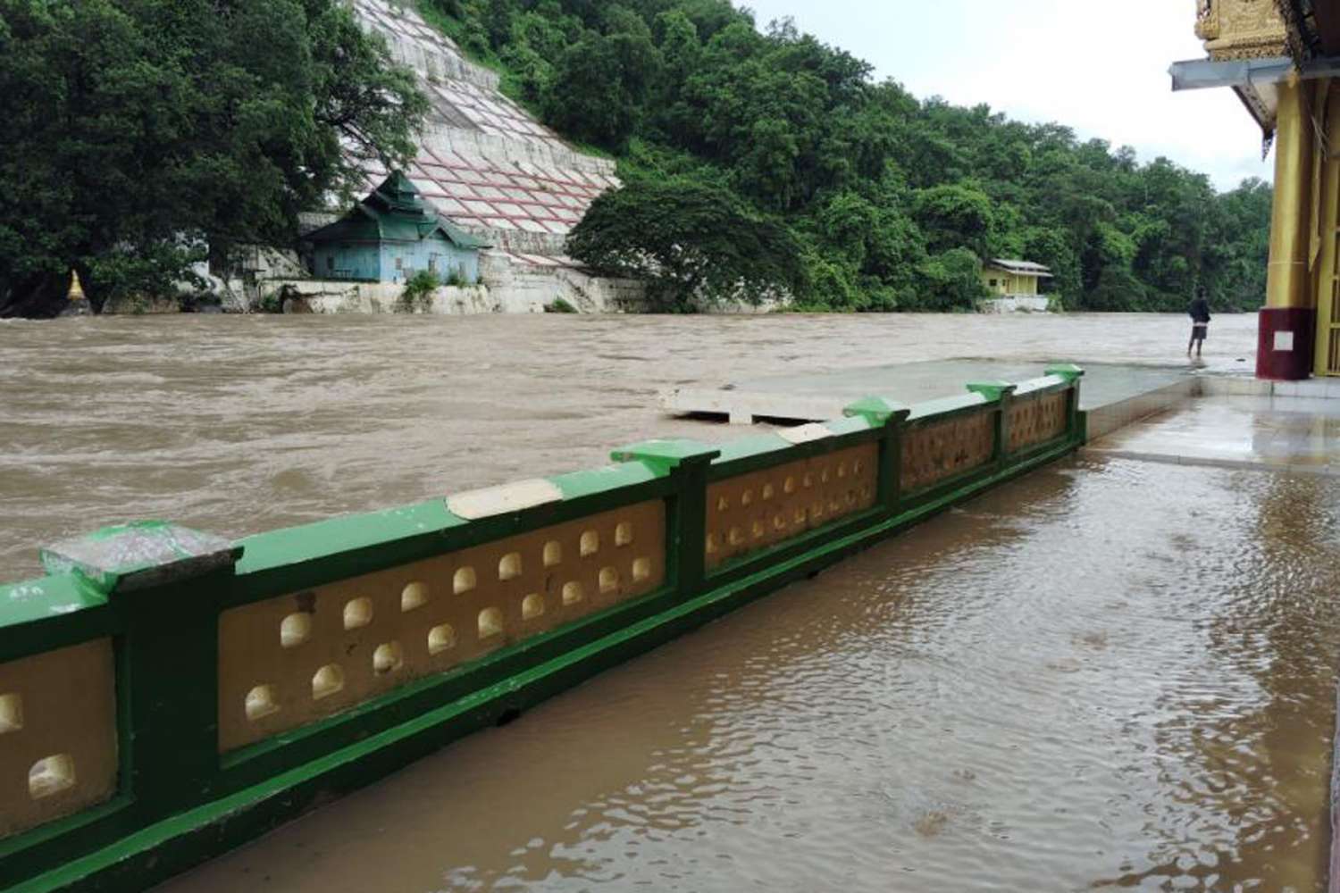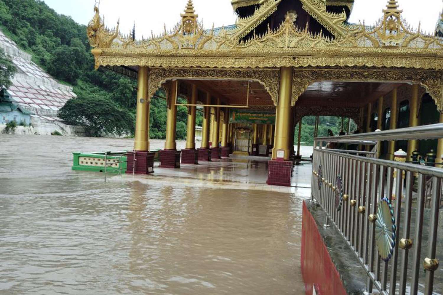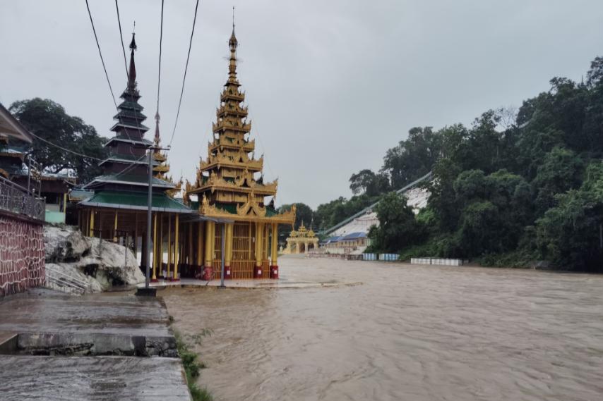 မင်းဘူး(စကု)မြို့နယ်၌ စက်တင်ဘာလ ၉ ရက်နေ့မှစတင်ကာ မိုးများအဆက်မပြတ်ရွာသွန်းမှုကြောင့် ရွှေစက်တော်မန်းချောင်းအတွင်း၌ မန်းချောင်းရေများ တဖြည်းဖြည်းတိုးမြင့်ဝင်ရောက်စီးဆင်းလျက်ရှိရာ ယခုလက်ရှိတွင် အောက်စက်တော်ရာ နဂါးအိုင်ဘက်ခြမ်းမှစ၍ ရင်ပြင်တော်အထက်သို့ မန်းချောင်းရေများစတင်ဝင်ရောက် စီးဆင်းနေပြီဖြစ်ကြောင်း၊ မန်းချောင်းအတွင်း ရေကြီးမှုဖြစ်ပွားရခြင်းမှာ မန်းရွှေစက်တော်ဘုရား အထက်ပိုင်းရှိဒေသများ၌ နေ့စဉ်မိုးများရွာသွန်းမှုကြောင့် တောင်ကျချောင်းရေများက ပန်းထိမ်းမန်းချောင်းနှင့် ငဖဲမန်းချောင်းအတွင်းသို့ စီးဆင်းဝင်ရောက်ကာ အဆိုပါမန်းချောင်းများမှတစ်ဆင့် ရွှေစက်တော်မန်းချောင်းအတွင်းသို့ ဆက်လက်ဖြတ်သန်းစီးဆင်းခြင်းဖြစ်ကြောင်း၊ ယခုနှစ် ဩဂုတ်လ (လဆန်းပိုင်း) ကလည်း အောက်စက်တော်ရာ ရင်ပြင်အထက်သို့ မန်းချောင်းရေ ၅ ပေခန့် ဖြတ်ကျော်စီးဆင်းခဲ့ကြောင်း၊ မိုးများ၍ သာမာန်ရေကျော်ခဲ့ခြင်းဖြစ်သည့်အတွက် ဘုရားကြီးတွင်ထိခိုက်ပျက်စီးမှုမရှိခဲ့ကြောင်း မန်းရွှေစက်တော် ဘုရားဂေါပကအဖွဲ့ဥက္ကဋ္ဌ ဦးဝင်းဌေးက ပြောသည်။
