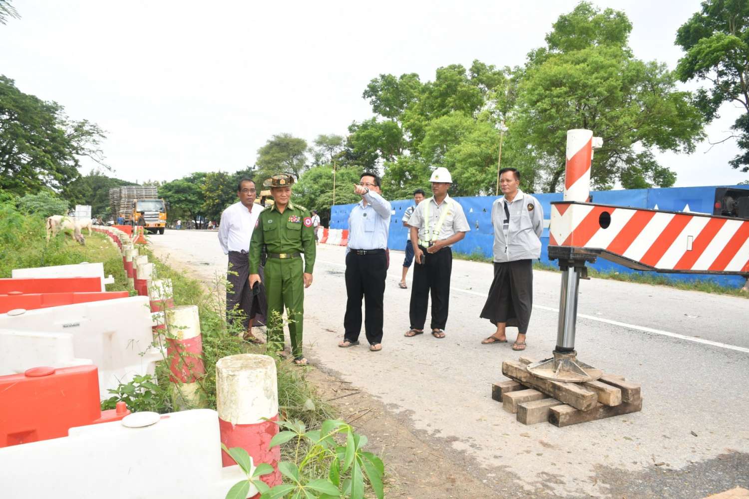 အဆိုပါကွင်းဆင်းကြည့်ရှုရာတွင် နေပြည်တော်ကောင်စီအဖွဲ့ဝင် ဗိုလ်မှူးကြီး ရဲမိုး၊ ဦးဇေယျာလင်းနှင့် တာဝန်ရှိသူများက အနော်ရထာရပ်ကွက် အုပ်ချုပ်ရေးမှူးနှင့် ပြည်သူများအားတွေ့ဆုံ၍ အားပေးစကားပြောကြားပြီး အနော်ရထာရပ်ကွက်အတွင်း ပျက်စီးမှုများ၊ အနော်ရထာရပ်ကွက်နှင့် အောင်ဇေယျာရပ်ကွက် ဆက်သွယ်သည့် နဝင်းချောင်းဖြတ်ကူးတံတား ခိုင်ခံ့မှုအား ကြည့်ရှုစစ်ဆေး၍လည်းကောင်း၊ ရှားတောရွာကျေးရွာနှင့် ညောင်ပင်သာကျေးရွာ ဆက်သွယ်သည့် ရေကျော်တံတားပျက်စီးမှုအား ကြည့်ရှုစစ်ဆေး၍လည်းကောင်း၊ ကင်းသာကျေးရွာအုပ်စု၊ ရန်ကုန်- မန္တလေးလမ်းဟောင်း၊ မိုင်တိုင်အမှတ် ၂၄၅ မိုင် ၇ ဖာလုံနှင့် ၂၄၆ မိုင်ကြား၊ နဝင်းချောင်းဖြတ်၍ တည်ဆောက်ထားသော အဆုံ- ဇီးကုန်းတံတား ၂ လမ်းသွား၊ ပေ ၁၀၀ သံဘောင်ဘေလီတံတား၊ ချဉ်းကပ်လမ်းပျက်စီးမှုအား တံတားအထူးဖွဲ့ ၆ မှ ပြန်လည်တည်ဆောက်မှုအား ကြည့်ရှုစစ်ဆေးခဲ့ပြီးနောက် ပြည်သစ်စံဆောက်လုပ်ရေးကုမ္ပဏီမှ လှူဒါန်းသည့် အလှူငွေကျပ် သိန်း ၁၀၀၊ ရွေးစုကျေးရွာအုပ်ချုပ်ရေးမှူးနှင့် ပြည်သူများမှ လှူဒါန်းသည့် အလှူငွေ ရှစ်သိန်းနှင့် အဝတ်အစားထုပ်များ လက်ခံယူခဲ့ကြောင်း သိရသည်။