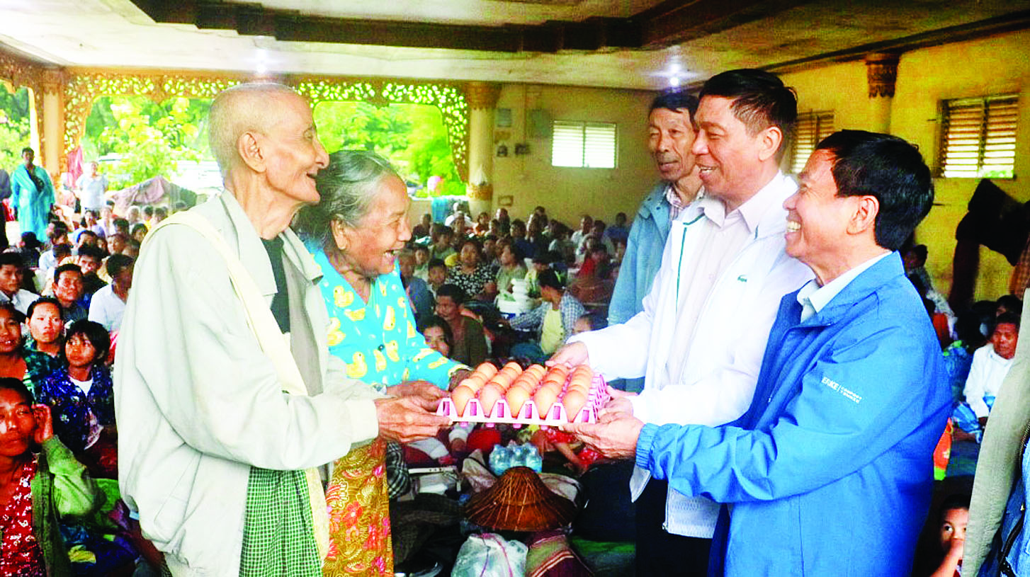ထို့နောက် ပြည်ထောင်စုဝန်ကြီး၊ နေပြည်တော်ကောင်စီဥက္ကဋ္ဌနှင့်အဖွဲ့သည် ဥပ္ပါတသန္တိ စေတီတော်မြတ် အရှေ့ဘက်ရှိဓမ္မာရုံတွင် ယာယီရေဘေးရှောင်လျက်ရှိသည့် ပြည်သူများနှင့် သွားရောက်တွေ့ဆုံ၍ စားနပ်ရိက္ခာများနှင့် လိုအပ်ချက်များကို ထောက်ပံ့ပေးအပ်ကာ အားပေး စကားပြောကြားသည်။