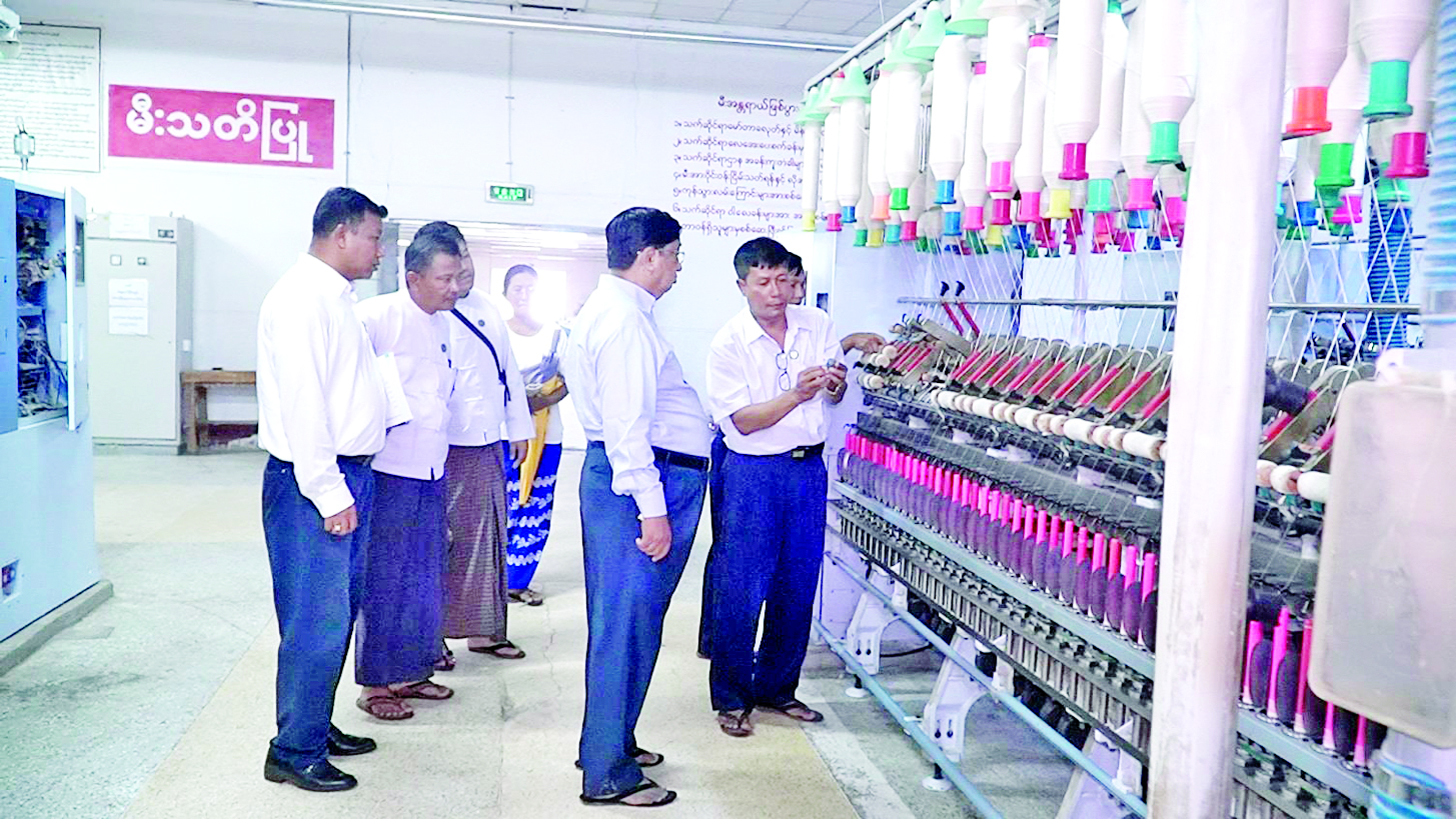 ထို့နောက် ပြည်ထောင်စုဝန်ကြီးသည် ပျော်ဘွယ်မြို့ရှိ အမှတ် (၈) အထည်စက်ရုံ (ပျော်ဘွယ်) သို့ရောက်ရှိပြီး စက်ရုံ၌တပ်ဆင်ထားရှိသည့် စက်ပစ္စည်းများအခြေအနေ၊ ကုန်ကြမ်း၊ ကုန်ချော သိုလှောင်ထားရှိမှုအခြေအနေတို့ကို လှည့်လည် ကြည့်ရှုစစ်ဆေးပြီး စက်ရုံမှထုတ်လုပ်သော ချည်များ၏ အရည်အသွေး တိုးတက်ကောင်းမွန်စေရေးအတွက် ပြုပြင်လဲလှယ်တပ်ဆင်ရမည့် စက်ပစ္စည်းအစိတ် အပိုင်းများစာရင်းပြုစုထားရန်၊ စက်ရုံ၌ကျန်ရှိနေသည့် ကုန်ချောပစ္စည်းများကိုလည်း MSME လုပ်ငန်းရှင်များလက်ဝယ်သို့ လုပ်ထုံးလုပ်နည်းနှင့်အညီ ဖြန့်ဖြူးရောင်းချနိုင်ရေး စီမံဆောင်ရွက်ရန်၊ စက်ပစ္စည်းများ ပျက်စီးမှုမရှိစေရေး ကြိုတင်ကာကွယ် ထိန်းသိမ်းပြုပြင်ခြင်းလုပ်ငန်းများကို သတ်မှတ်ထားသည့် လုပ်ငန်းစဉ်များနှင့်အညီ တိတိကျကျလိုက်နာဆောင်ရွက်ရန်၊ ယခုရက်ပိုင်းတွင် မိုးအဆက်မပြတ် ရွာသွန်းနေသည့်အတွက် စက်ရုံရှိ စက်ပစ္စည်းများ၊ ကုန်ကြမ်း၊ ကုန်ချောများ ပျက်စီးဆုံးရှုံးမှုမရှိစေရေး ကြိုတင်ကာကွယ်ရေး လုပ်ငန်းစဉ်များကို ပြည့်ပြည့်ဝဝဆောင်ရွက်ထားရန် မှာကြားခဲ့ကြောင်း သိရသည်။