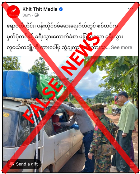 ညောင်တုန်းမြို့နယ်အတွင်း အကြမ်းဖက်သမားများ မြို့၊ ရွာများအတွင်း ဝင်ရောက်၍ တရားမဝင်လက်နက်ခဲယမ်းများ သယ်ဆောင်ကာ အကြမ်းဖက်လုပ်ရပ်များ မလုပ်ဆောင်နိုင်စေရန် လုံခြုံရေးတပ်ဖွဲ့ဝင်များက စနစ်တကျ စစ်ဆေးရှာဖွေခြင်းများ ဆောင်ရွက်လျက်ရှိကြောင်း၊ ထိုသို့ဆောင်ရွက်နေမှုများကို တရားမဝင်ပြည်ဖျက်မီဒီယာများက အကြမ်းဖက်သမားများ လွယ်ကူစွာ ဝင်ထွက်သွားလာနိုင်စေရန်နှင့် လုံခြုံရေးတပ်ဖွဲ့ဝင်များအပေါ် ပြည်သူလူထုမှ အထင်အမြင်လွဲမှားစေရန် ရည်ရွယ်၍ ယခုကဲ့သို့မှန်ကန်မှုမရှိသည့် သတင်းဓာတ်ပုံများဖြင့် သတင်းအမှားများကို ဝါဒဖြန့်နေခြင်းဖြစ်ကြောင်း လုံခြုံရေးတာဝန်ရှိသူတစ်ဦး၏ ပြောကြားချက်အရ သိရှိရသည်။